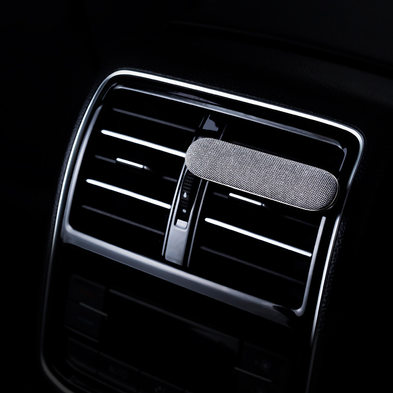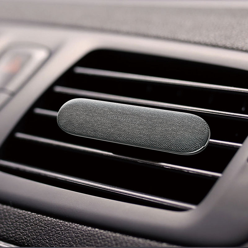 Name: Car air outlet aromatherapyMaterial: Fabric + Zinc AlloyColor: dark graySize: 78x18.5x42mmThree inner cores included in the packing list