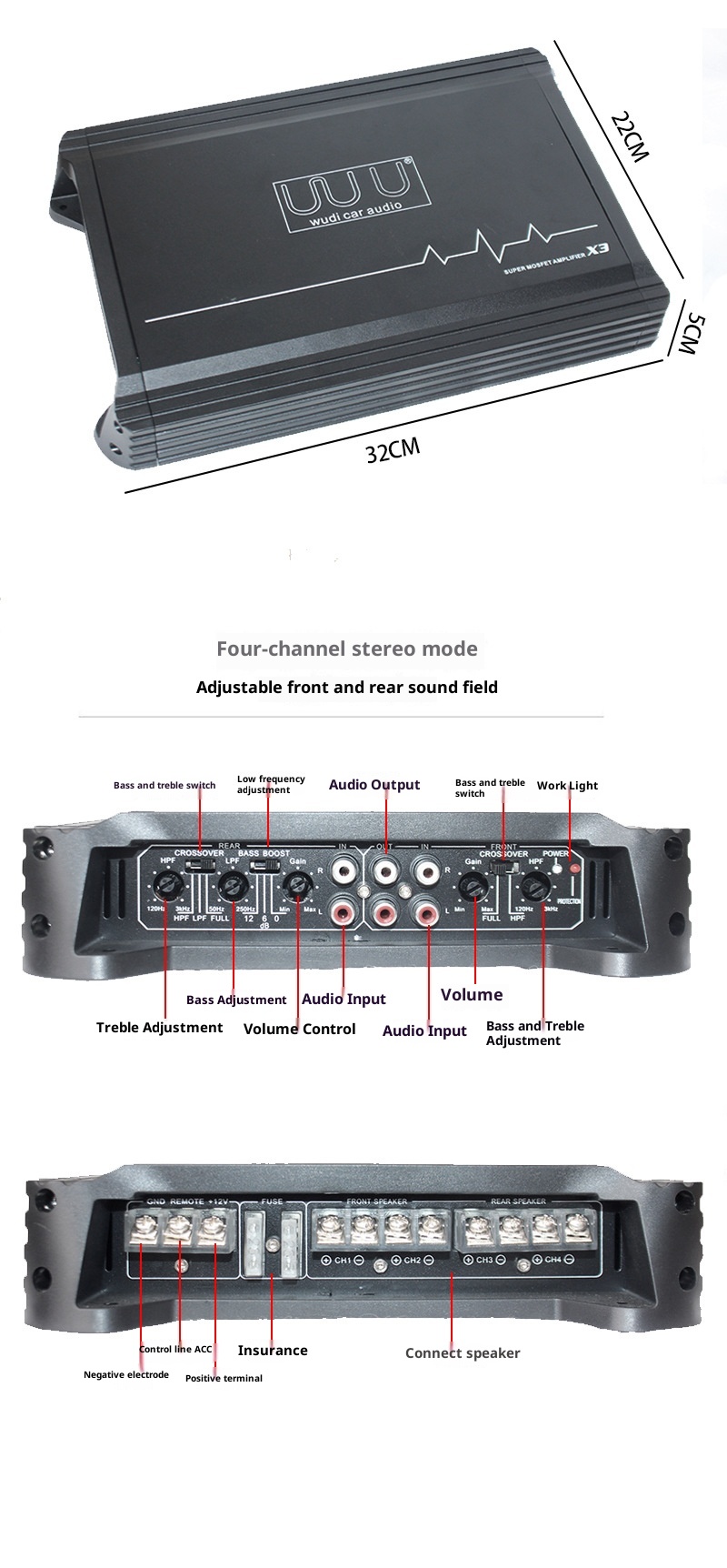 Product information:Material: aluminum alloy Model: X3 Applicable vehicle model: general Voltage: 12(V) Impedance: 4(Ω)