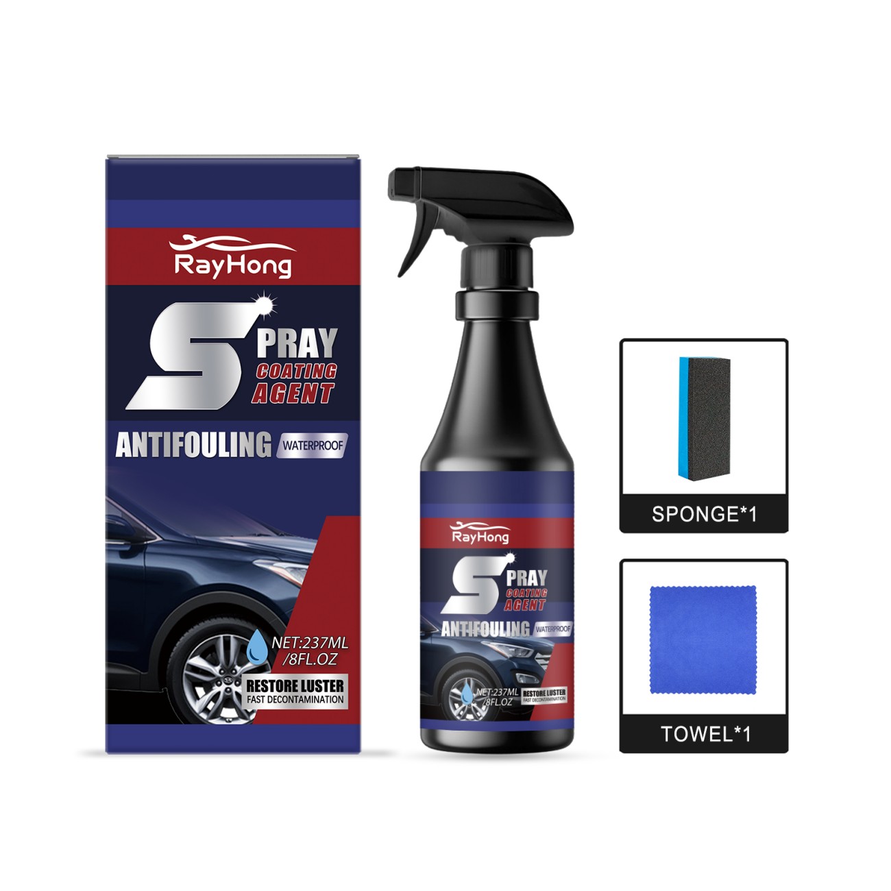 Product information:Ingredients: deionized water, PTFE.Packing list:Sponge *1+ towel *1+ car coating spray *1
