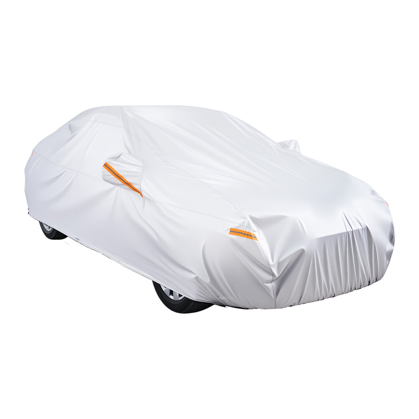 Features & Details Sedan-Specific Car Cover: Specifically designed for mid-size European sedans such as the BMW 3 Series, BMW 4 Series, Mercedes-Benz C-Class, Audi A4L, and Audi A5, our full exterior cover provides a custom fit. It doesn't fit vehicles with retractable or whip antennas or high protruding features. Includes a storage bag for easy folding and storage in your trunk Heavy-Duty Construction: This car cover, made of premium PEVA aluminum cotton, is designed to withstand 2000mm of water pressure. It provides excellent waterproof, heat-resistant, and quick-drying performance. The double-needle seams reinforce durability, while the soft cotton lining protects your car's paint. Ideal for all-weather conditions and everyday use Easy Access & Visibility: Equipped with a left-side zipper, this car cover waterproof allowing for easy access to your car without needing to remove it entirely. The cover also features reflective strips on both sides and four additional strips on the front and rear, enhancing visibility and safety during nighttime Full Wind Resistance: This custom fit car cover is designed with elastic hems on the front and rear for a perfect fit, offering complete wind protection. Three windproof straps with buckles keep the cover tightly in place, ensuring it won't be blown away during strong winds or typhoon-like conditions. Ideal for all-weather, secure coverage Complete Element Shield: Offering year-round protection, this full car cover features a waterproof outer layer that resists heavy water pressure, perfect for wet weather. Its high-reflective silver lining blocks harmful rays to keep your car safe from sun damage. Shield your vehicle from rain, frost, leaves, sand, dirt, and more, no matter the season