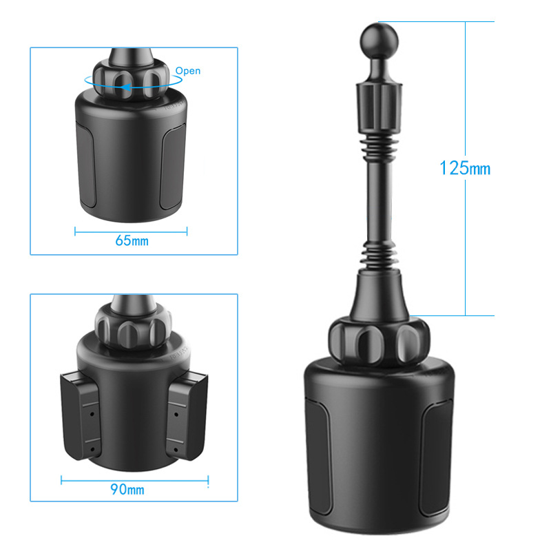 Product name: car cup holder mobile phone holderColour: BlackMaterial: ABS+aluminum tube encapsulationPacking size: 9*9*16.5cm