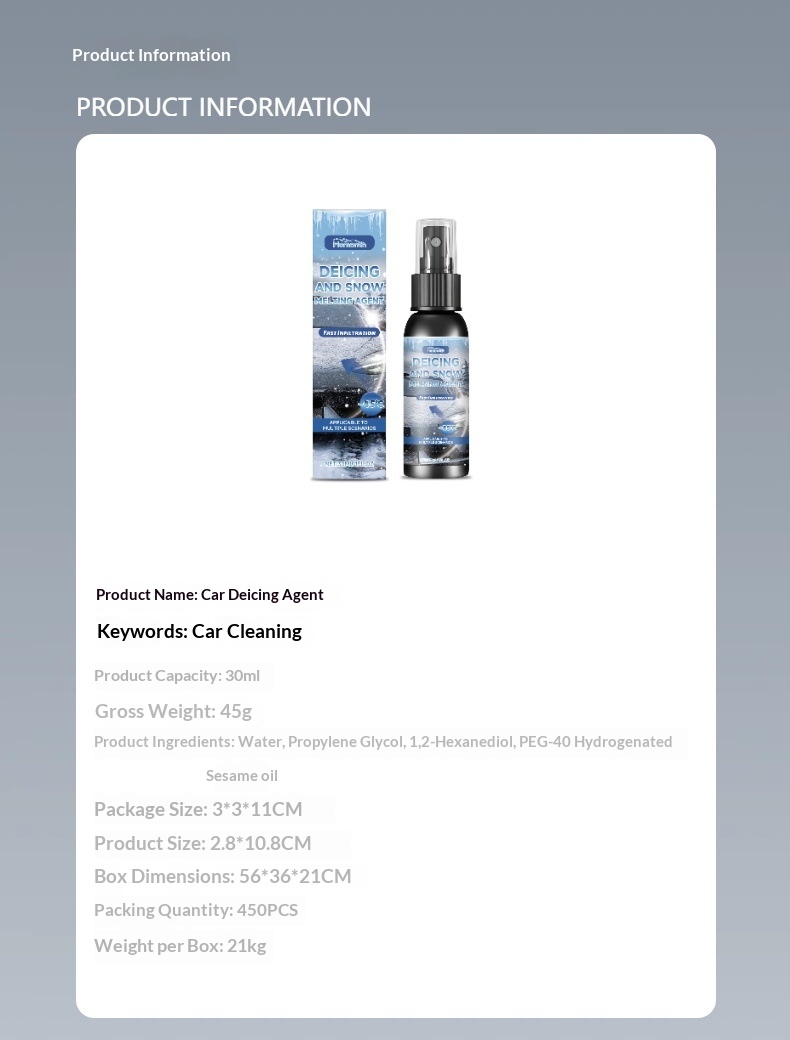 Product information:Type: Automotive Ice and Snow Melt Agent Color: 30 ml Material: PET
