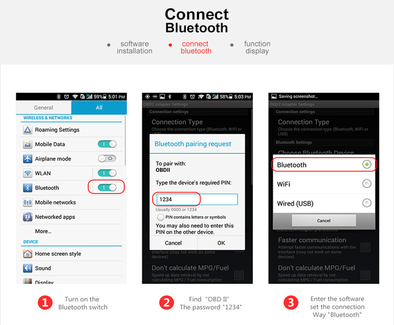 Support different types of devices to use this scanning tool: This ELM327 couple inquires about the service software Android mobile phone, OBDscope software Symbian system mobile phone, mobile phone PPC system (Windows Mobile), ScanMaster-ELM for PC