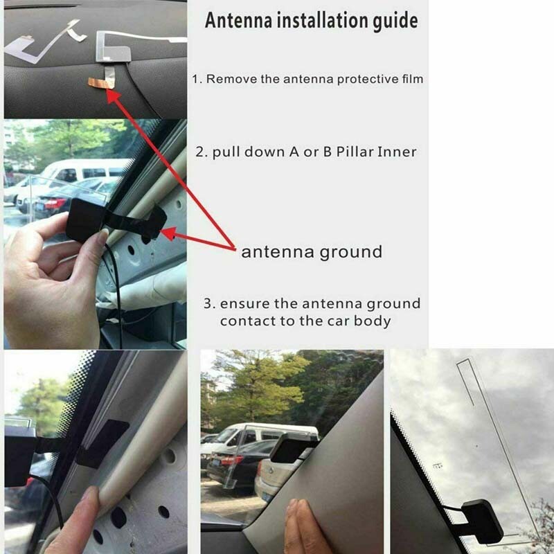 Internal antenna / Active-amplified in-car DAB aerial / Not suitable for windscreens with a metallic tint or heating element.