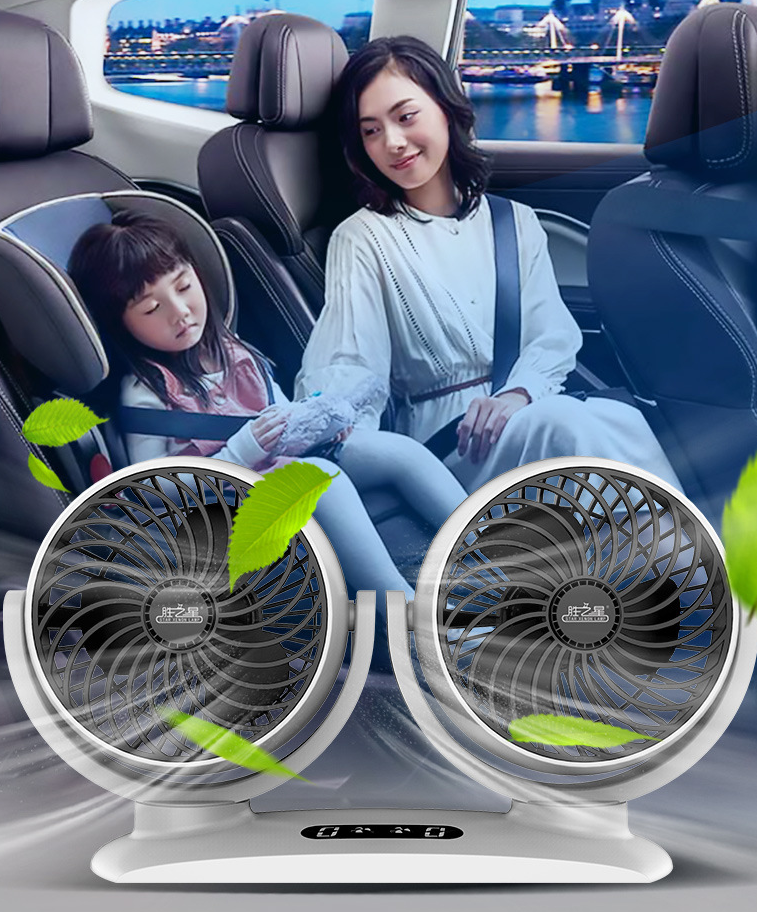 Car Dual-Head Usb Fan 12v24V Powerful Cooling Electric Fan