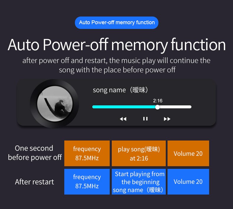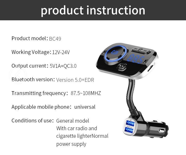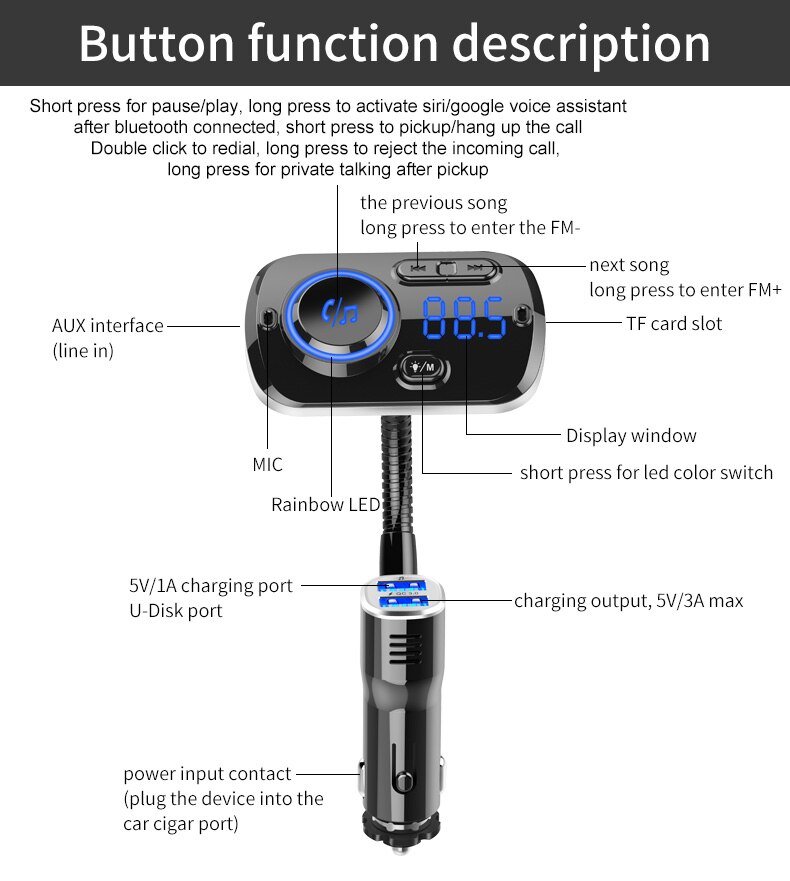 1. Support FM full frequency point transmitting function 87.5-108.0MHZ