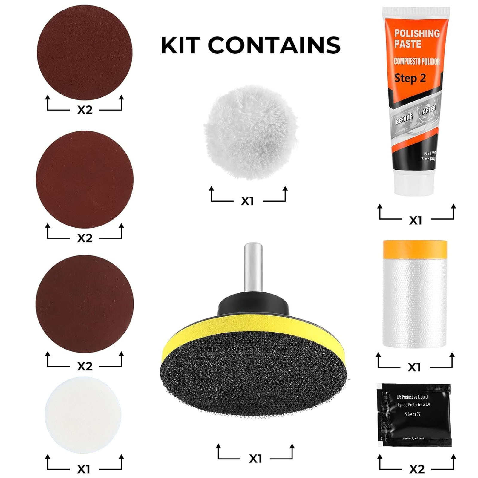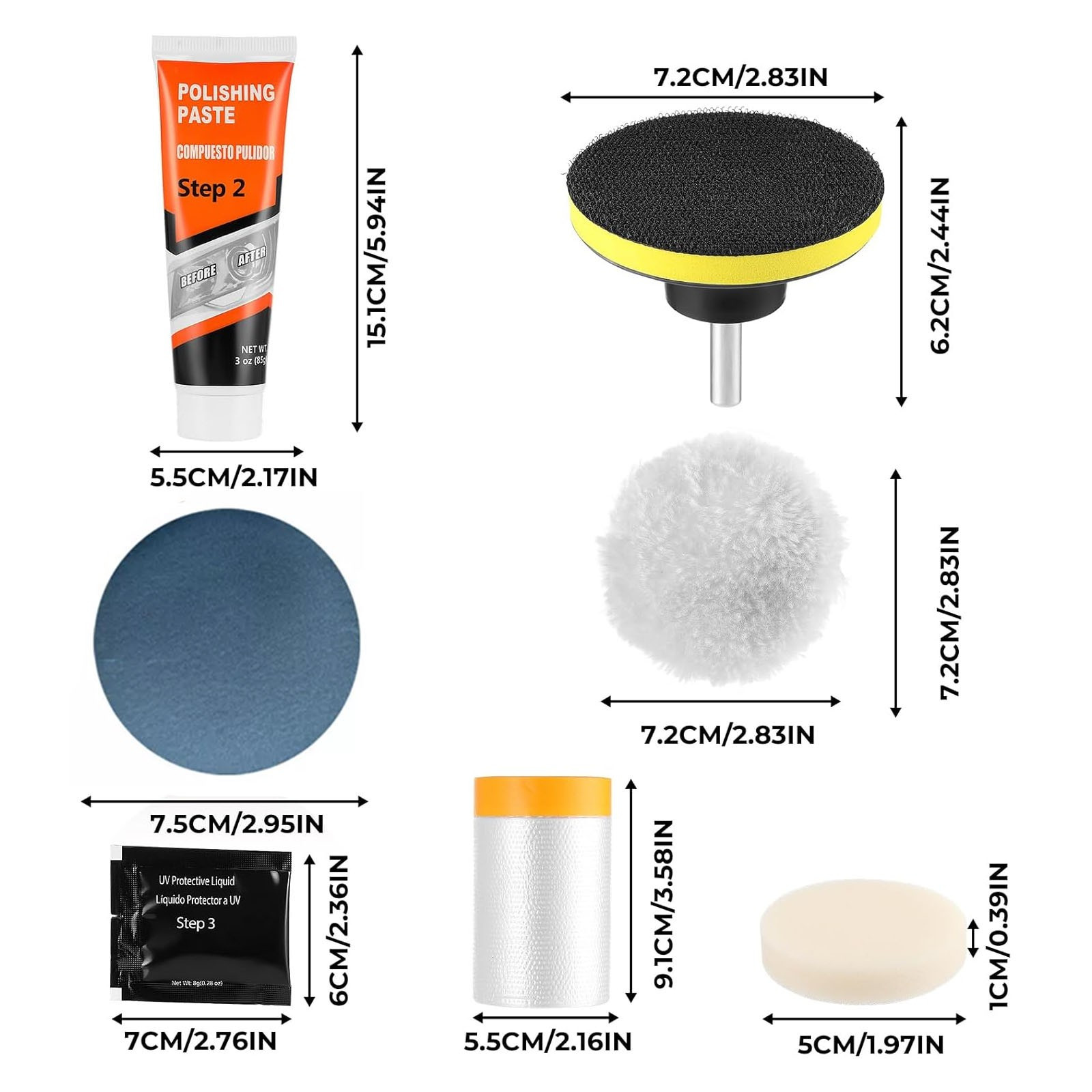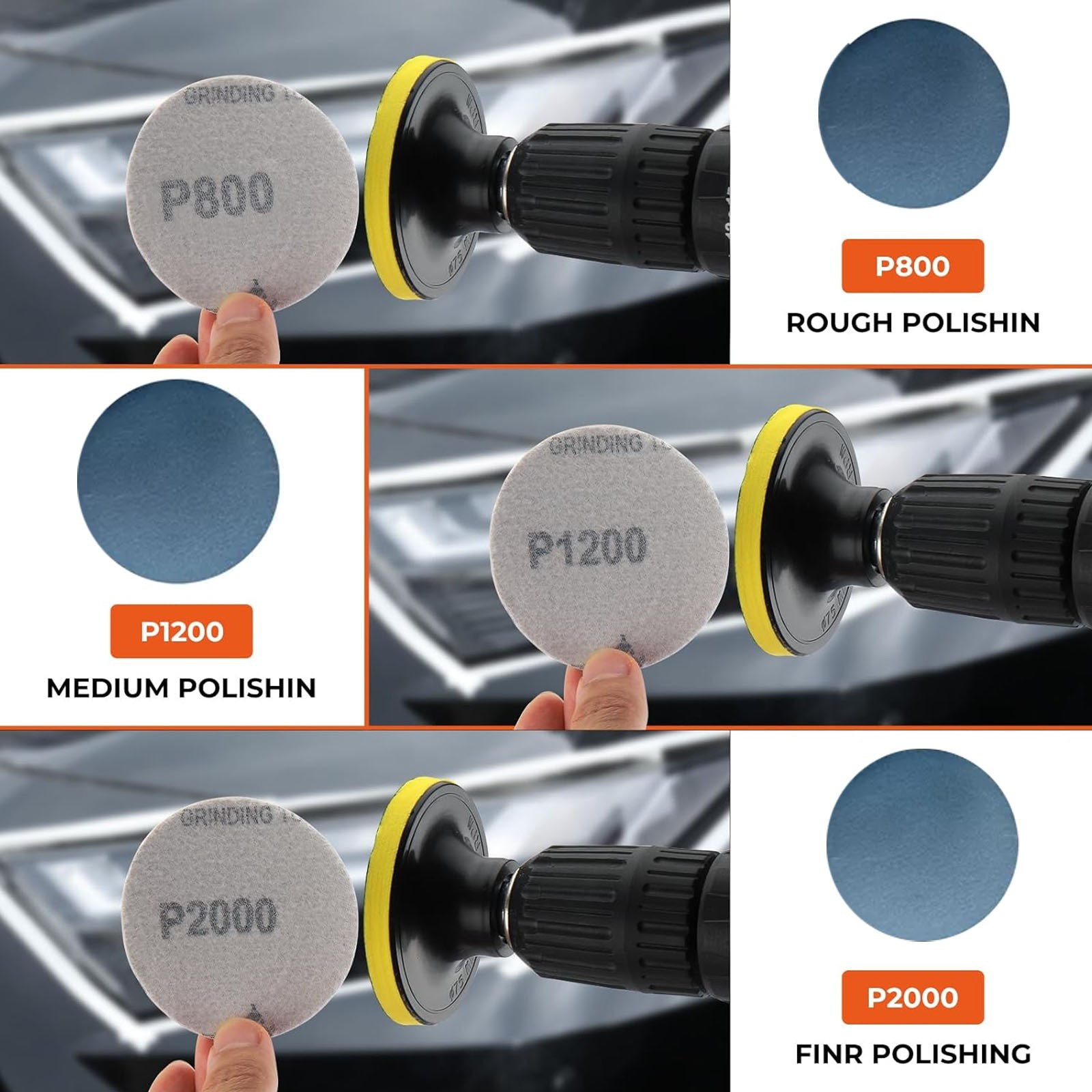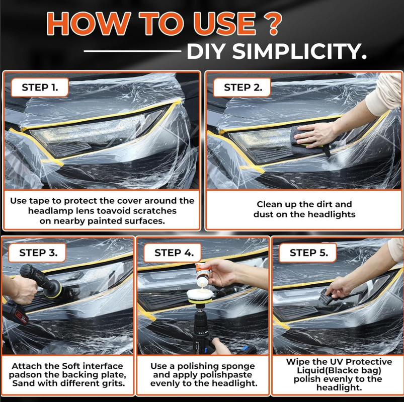 * Squeeze the amount of blue powder on the headlamps, with sponge orange soft surface polished headlamps at least 2 minutes, know the headlamps shiny, and then talk sponge clean and clean.