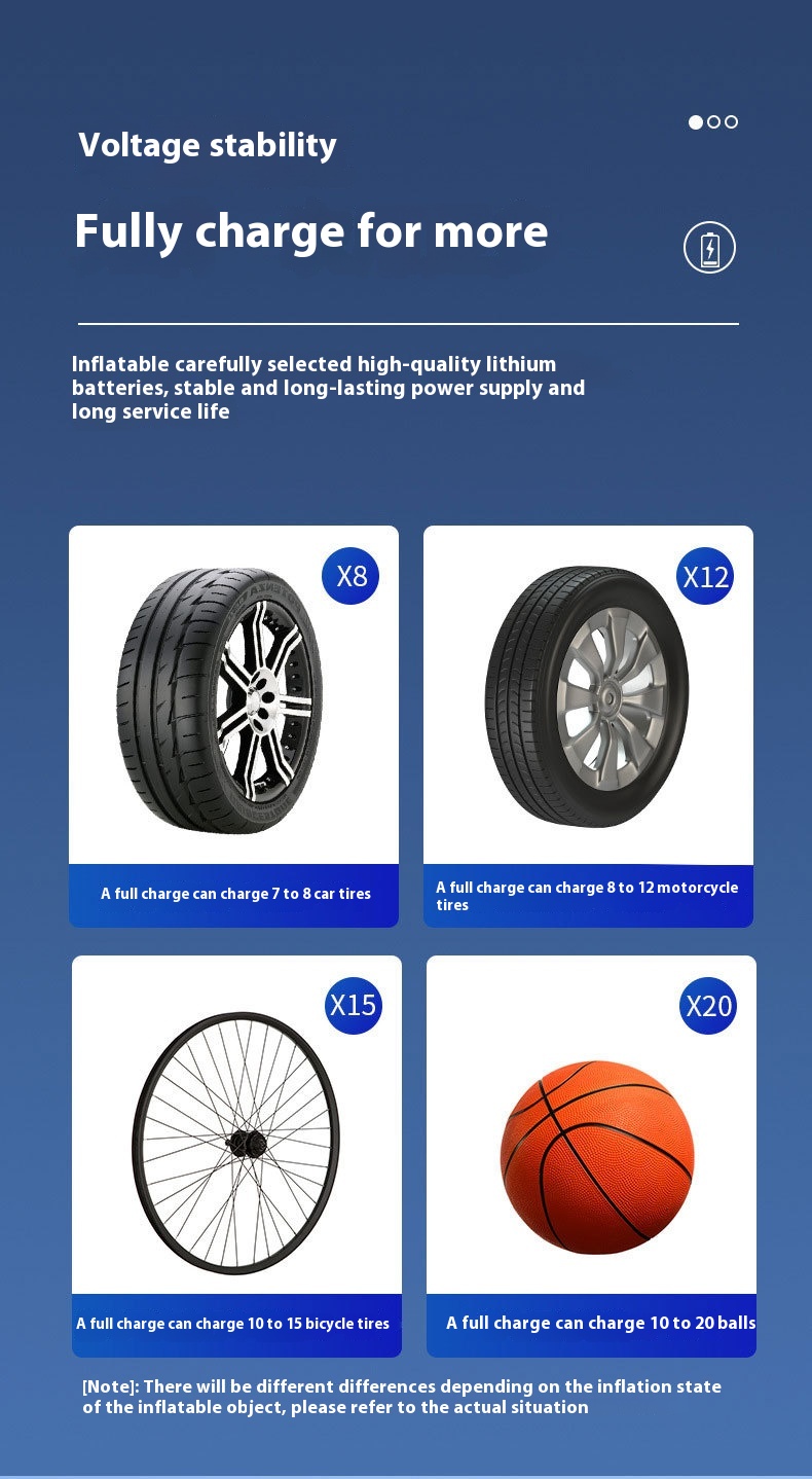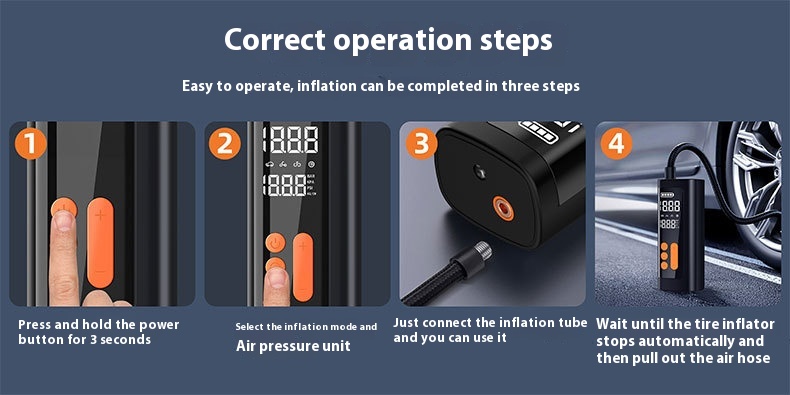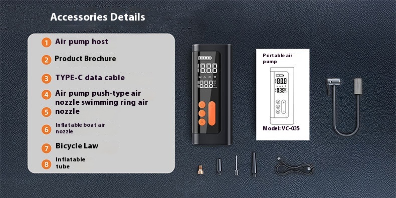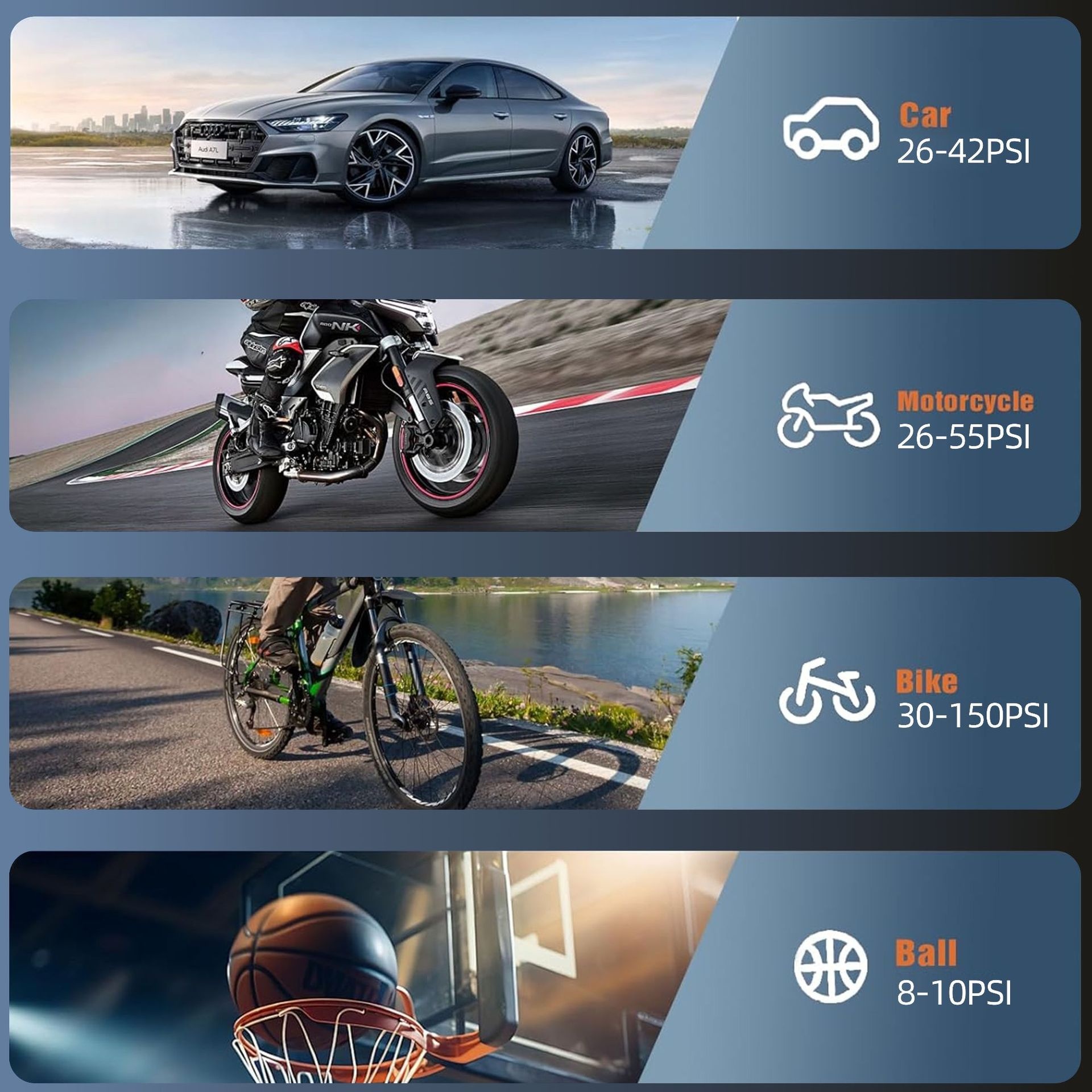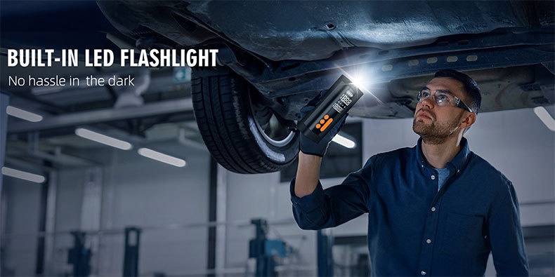 Additional functions: lighting, tire pressure gauge, warning light, USB charging