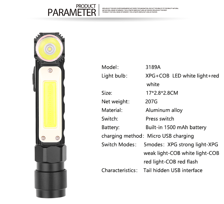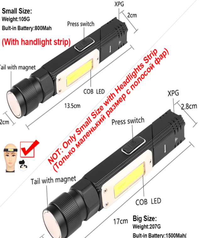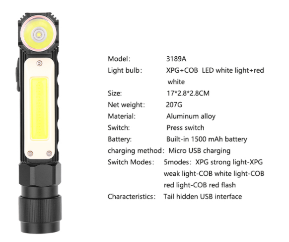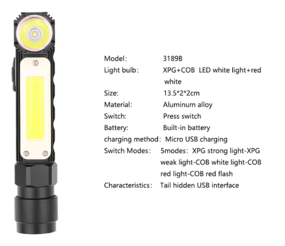 Battery level 5: XPG strong light - XPG weak light - cob white light - cob red light - cob red flash