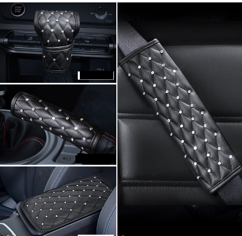 Product information:Color: shoulder pad [a pair], handbrake, gear, armrest pad Material: lambskin