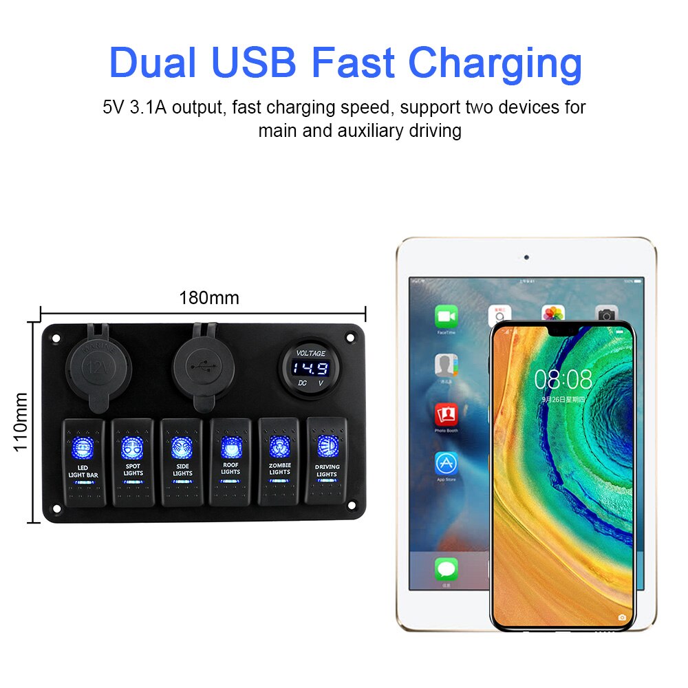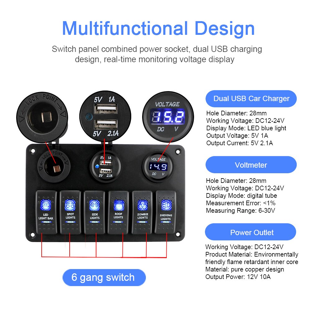 [Light color]: USB and switch are blue, cigarette lighter LDE is blue