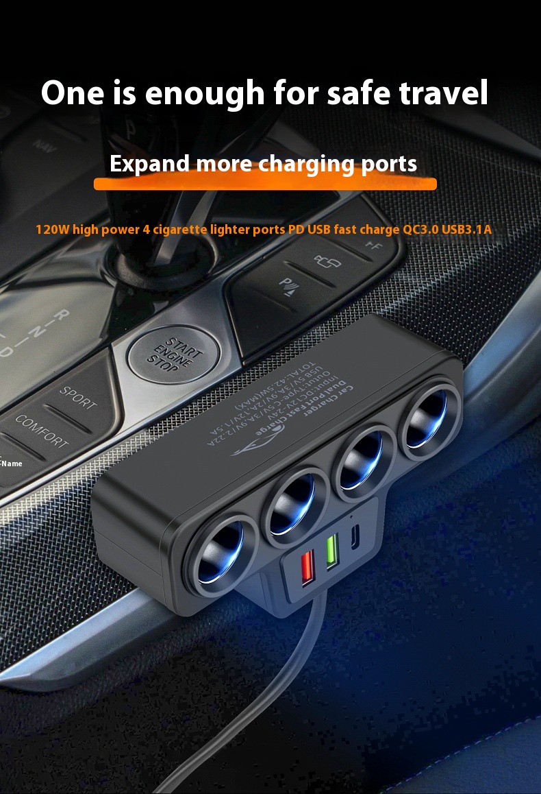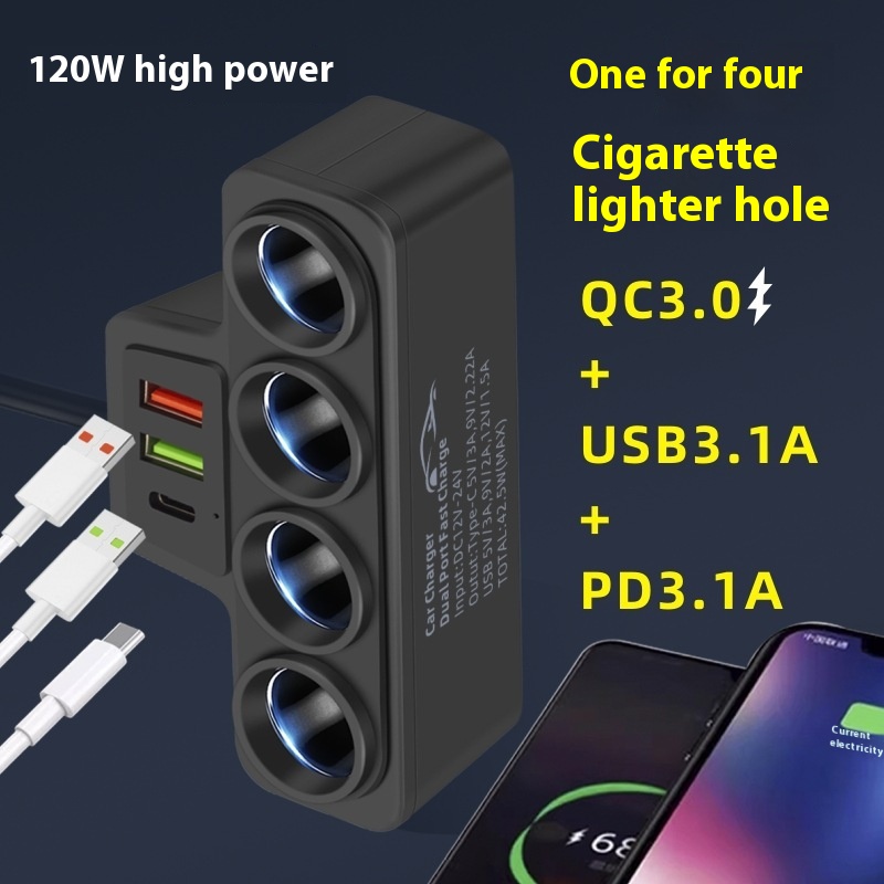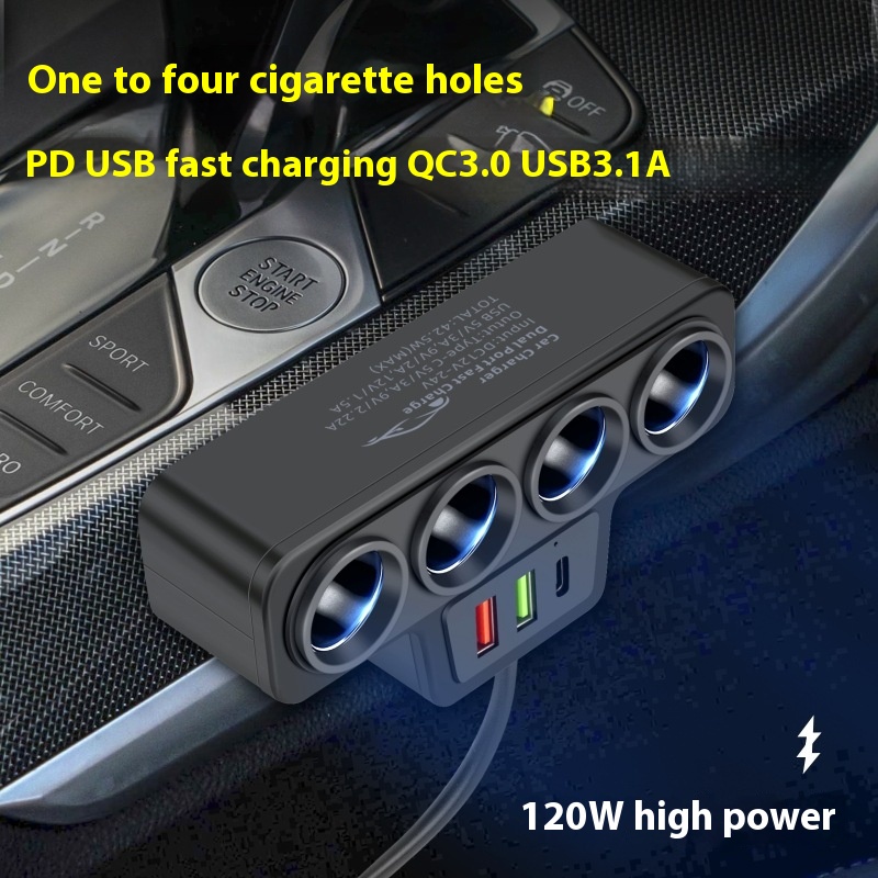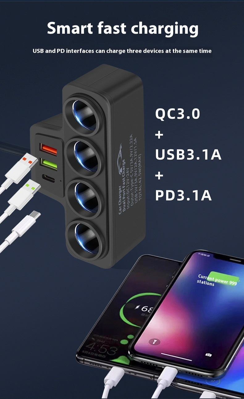 Specification: One to four cigarette lighter [dual USB+QC+PD]