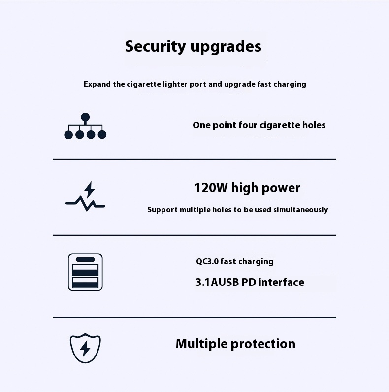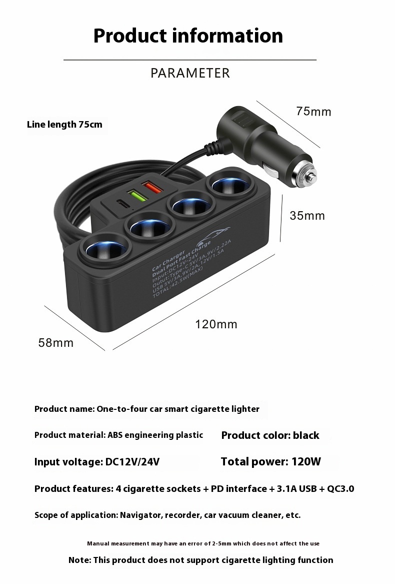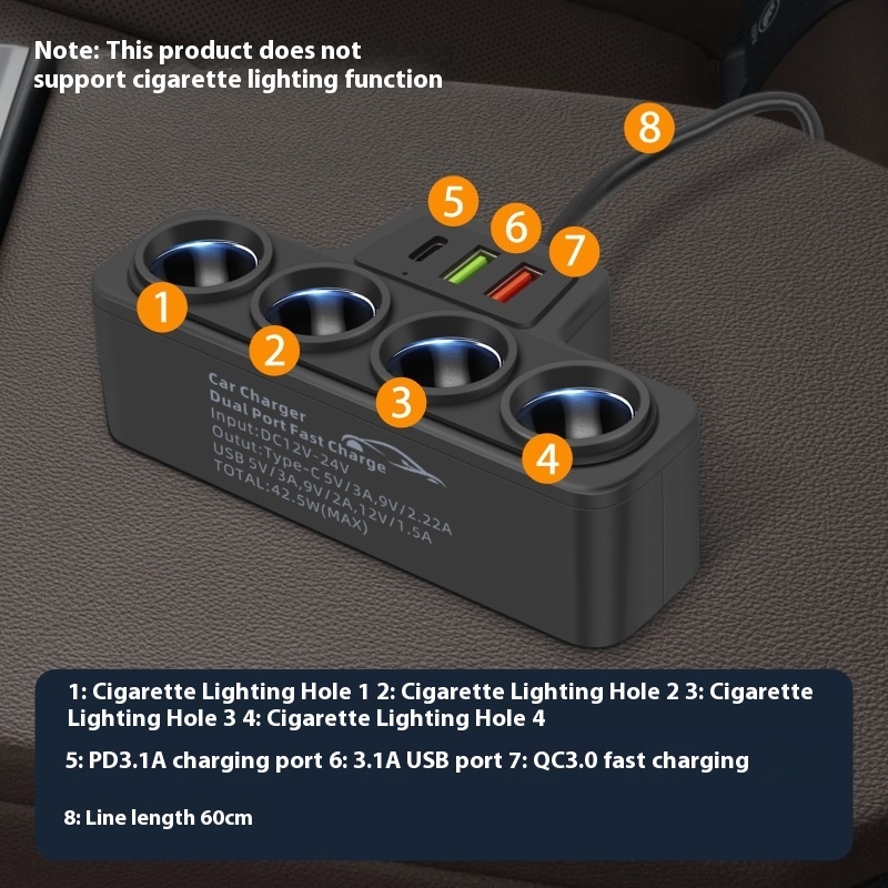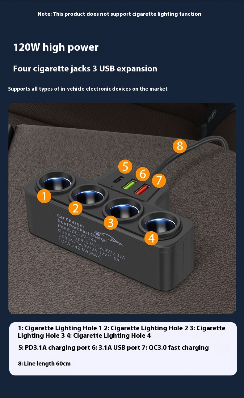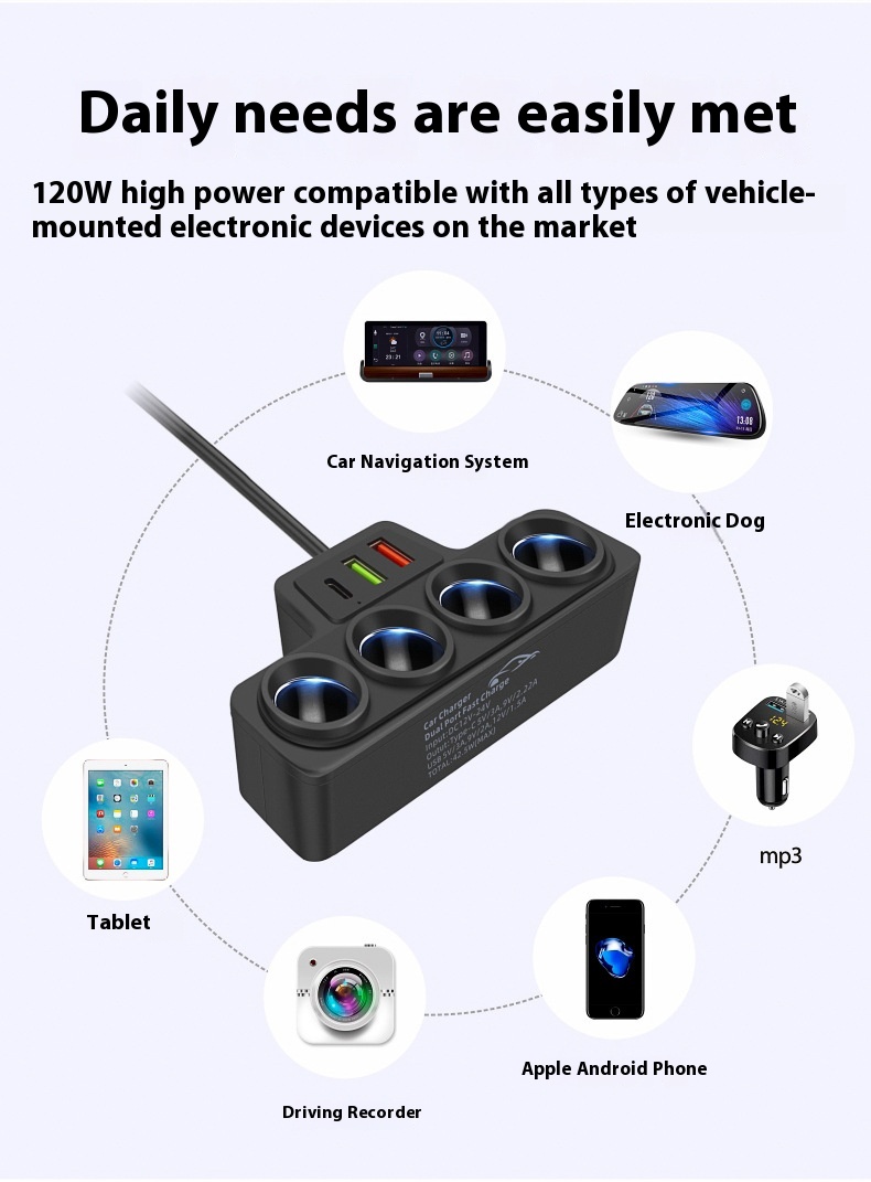 Specification: One to four cigarette lighter [dual USB+QC+PD]