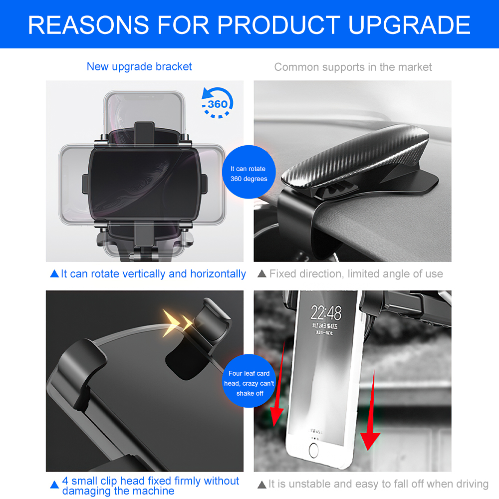 1. Lightweight design, suitable for 3-7 inch cellphones, can be installed on the dashboard, rearview mirror and sun visor (tips: this cellphone holder can be used at home)