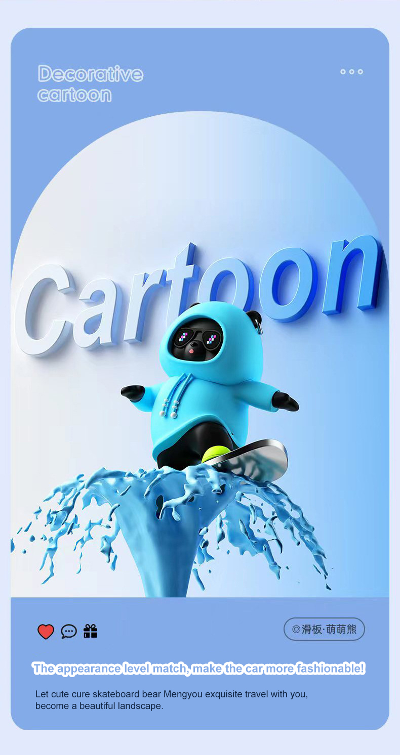 Its compact, stable size fits neatly on most car dashboards (as shown in the in-car scene), adding a personalized, fun accent without taking up excess space. Whether you’re looking to liven up your car’s interior or add a unique decorative item that withstands daily use, this high-temperature resistant skateboarding bear ornament is a stylish, durable choice.