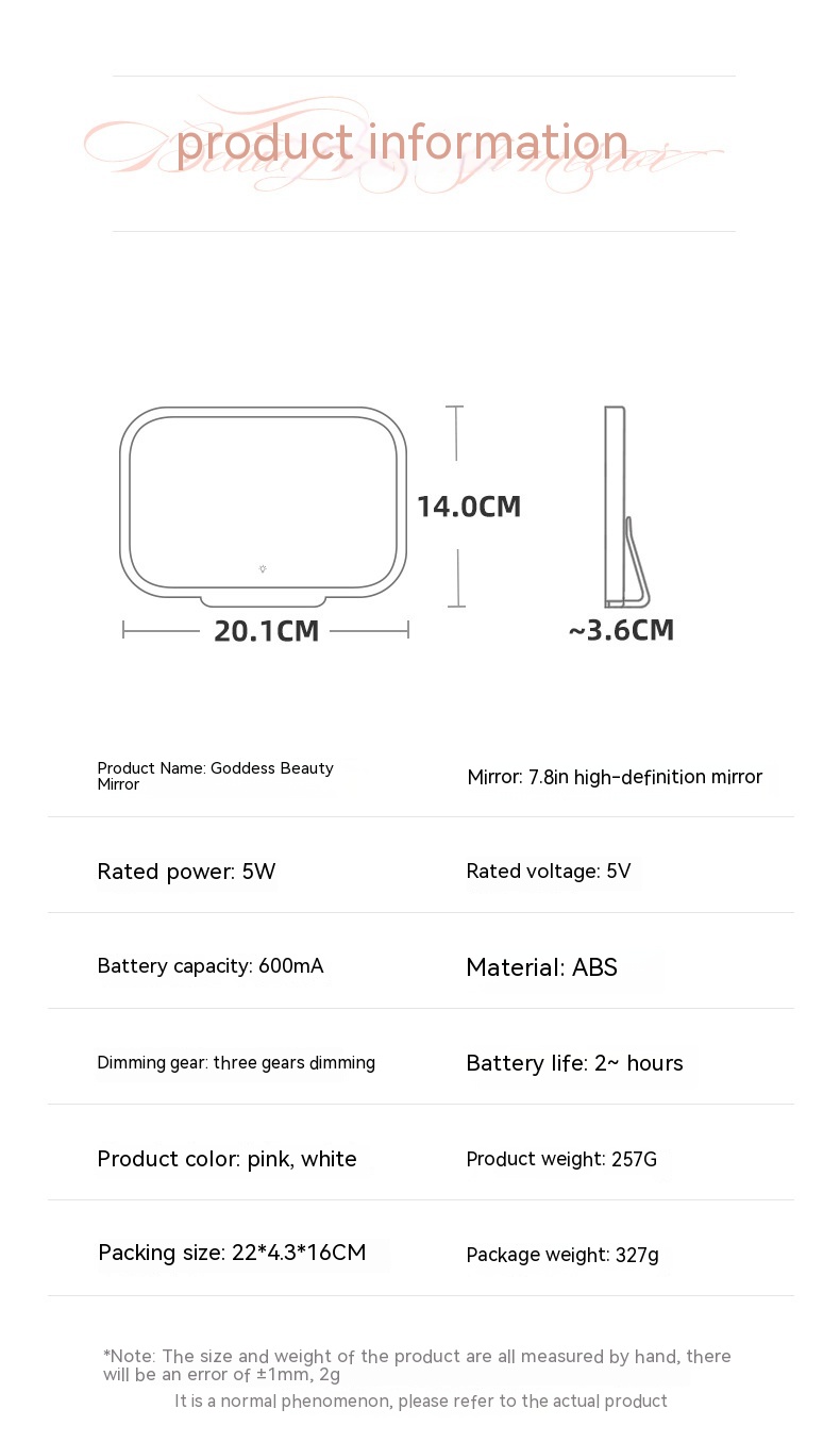 Product features: large-sized mirror surface;