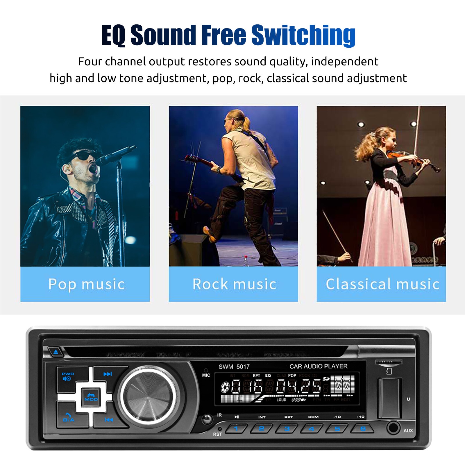 MEDIA PLAYBACKS--Multi-format playbacks for your choices. Be compatible with most Bluetooth devices. Allowing music steaming. Enjoy a pop in your favorite CD or via USB port, FM radio stations with up-to-date songs/news/sports/weather etc. Digital clock display, the default EQ (POP / ROCK / CLASS) Four-channel sound.