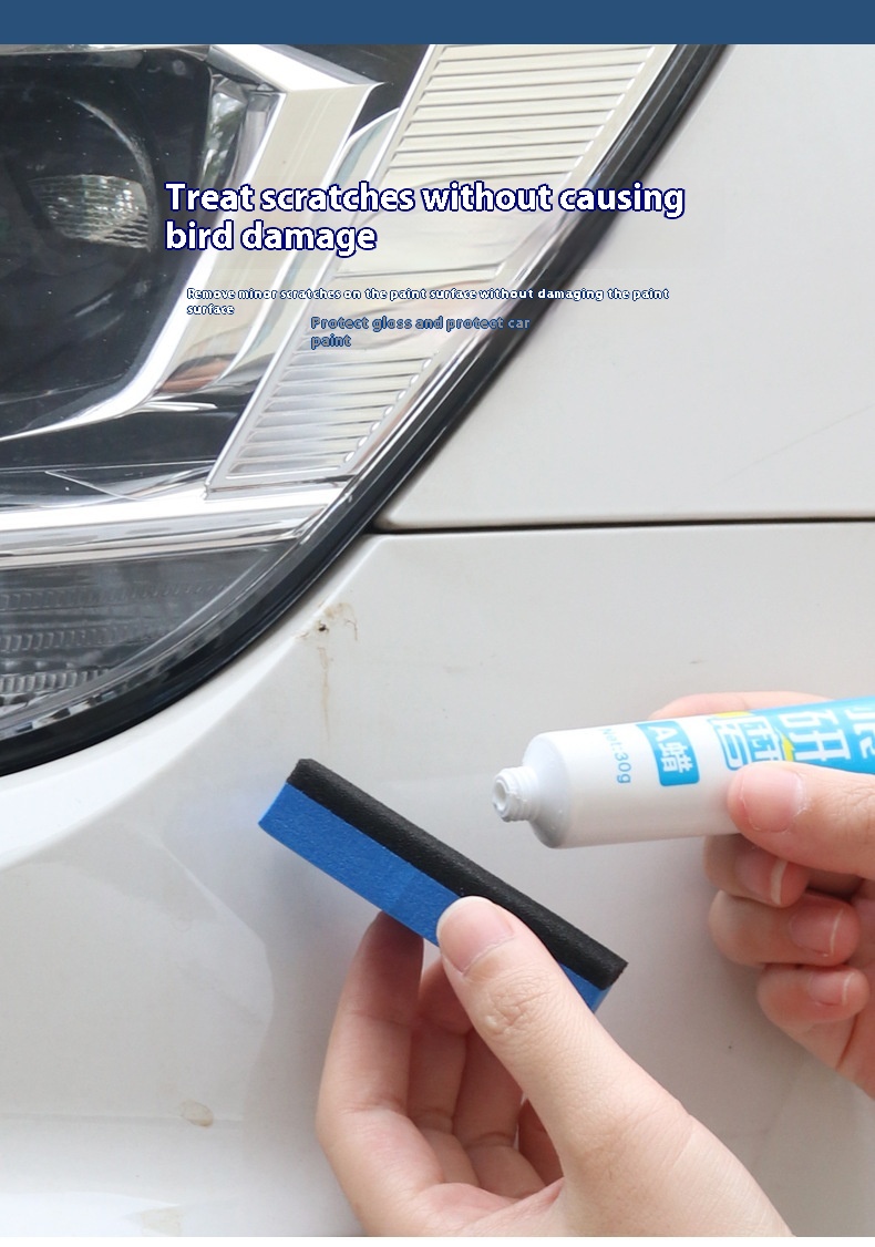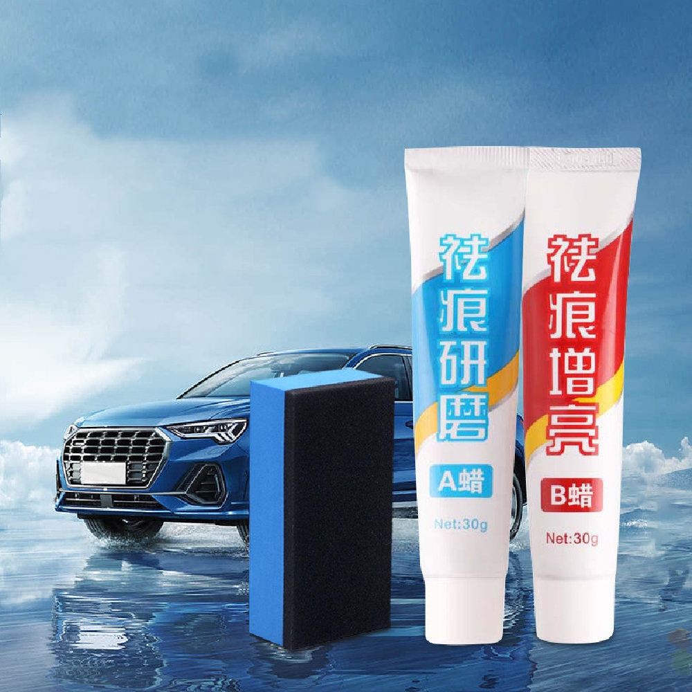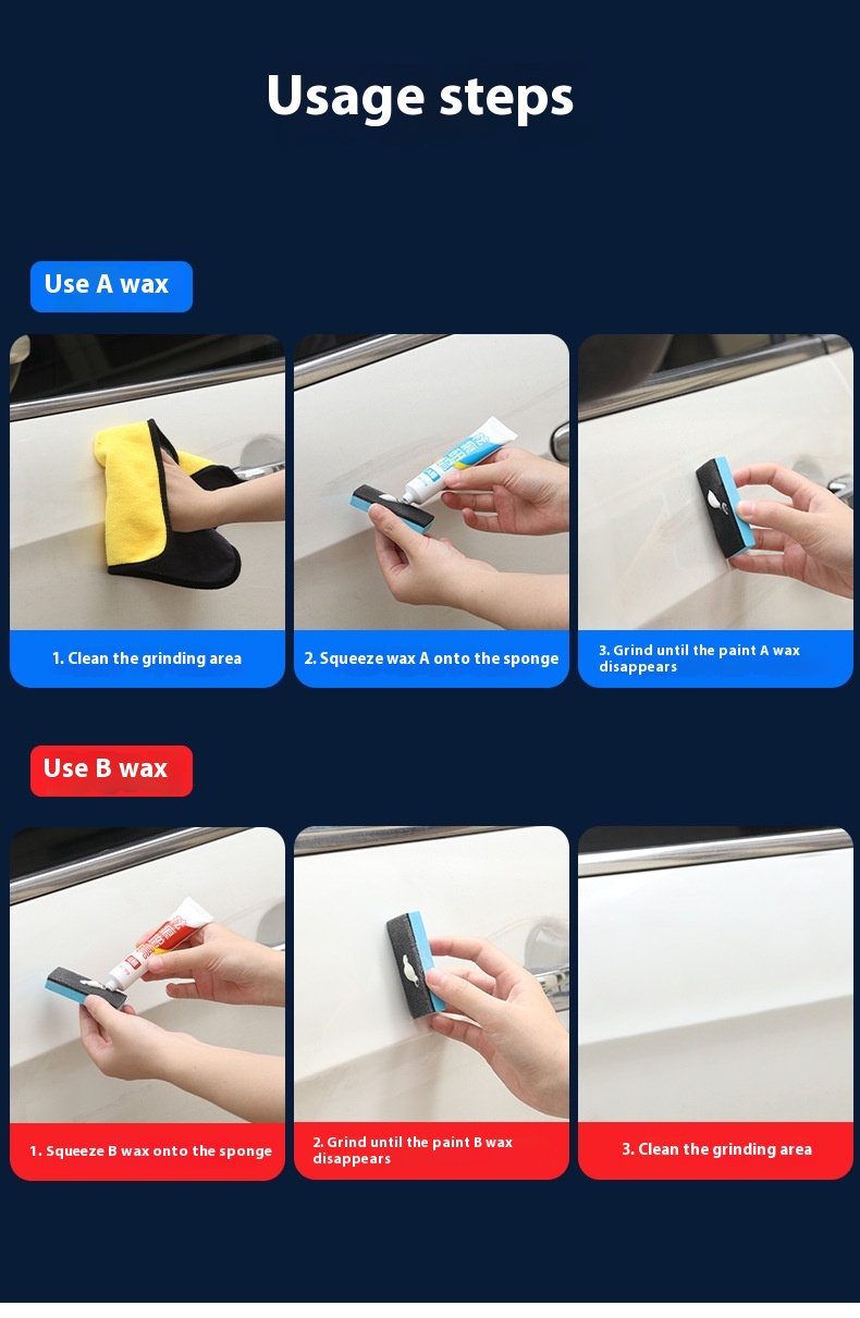 Wax A: Squeeze an appropriate amount of scratch remover onto the polishing sponge, apply appropriate force to polish the scratches until they disappear, and finally clean the paint surface.