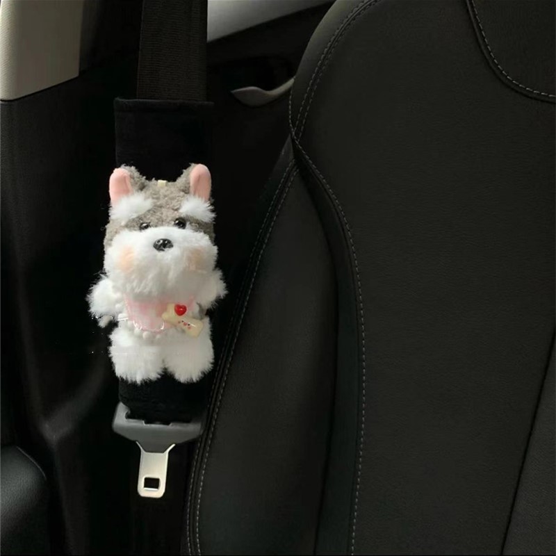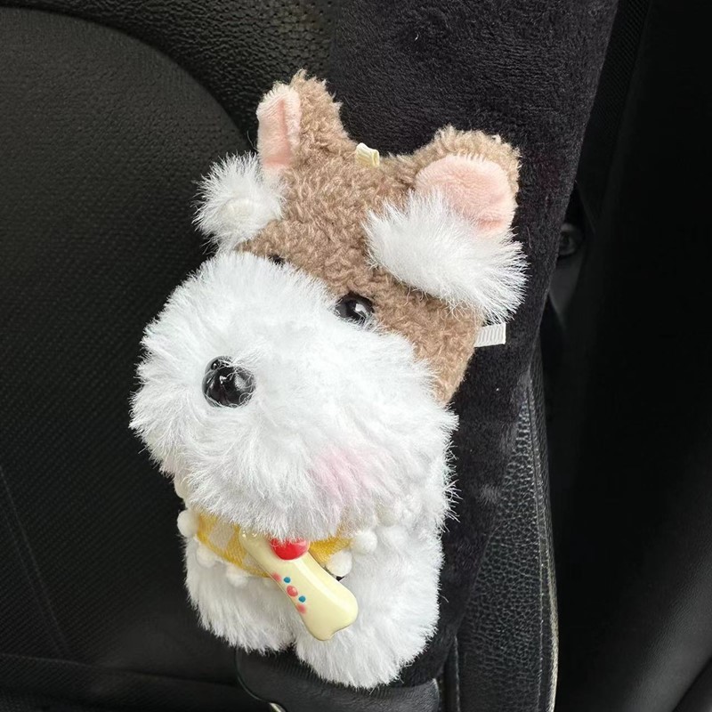 Color classification: Yellow bib, Grey Schnauzer keychain, Pink bib, Grey Schnauzer keychain, Pink bib, Grey Schnauzer seat belt shoulder guard, Yellow bib, Ka Schnauzer seat belt shoulder guard