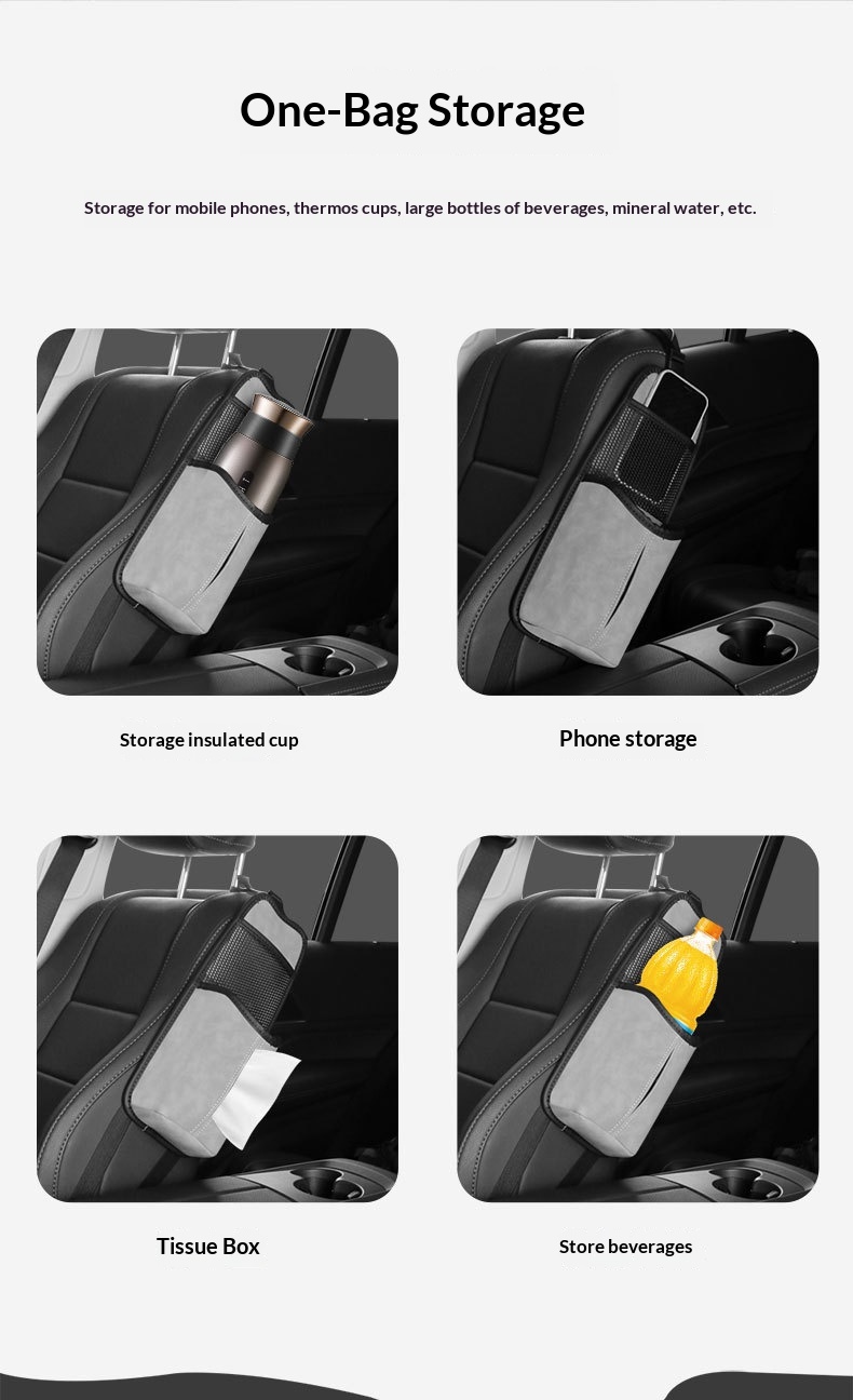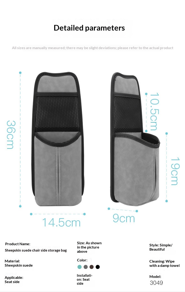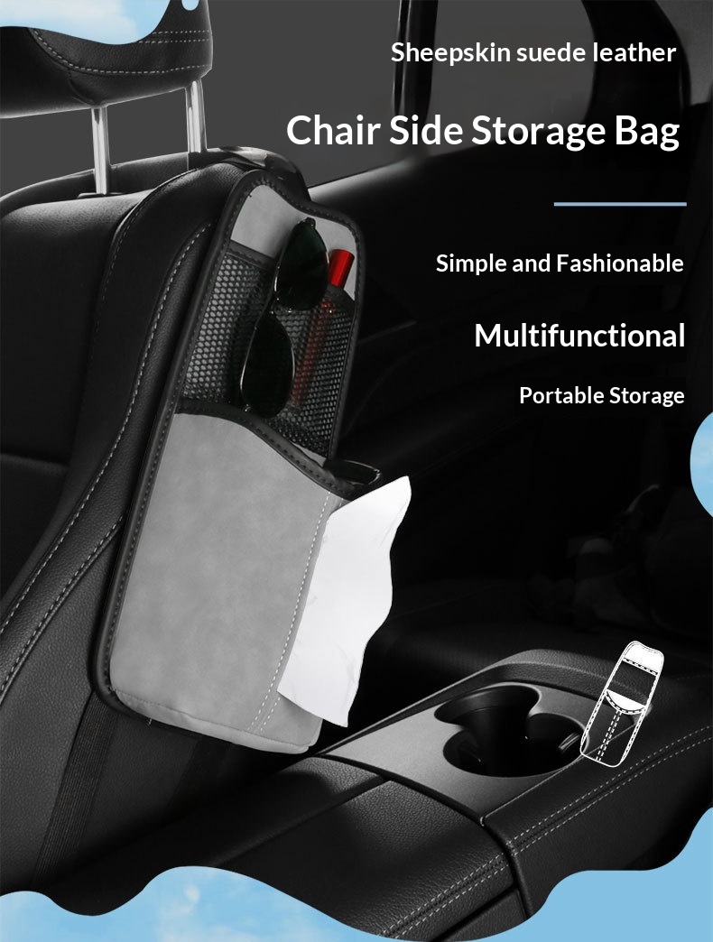 Car Seat Suspension-style Solid-color Suede Seat Side Storage Pocket