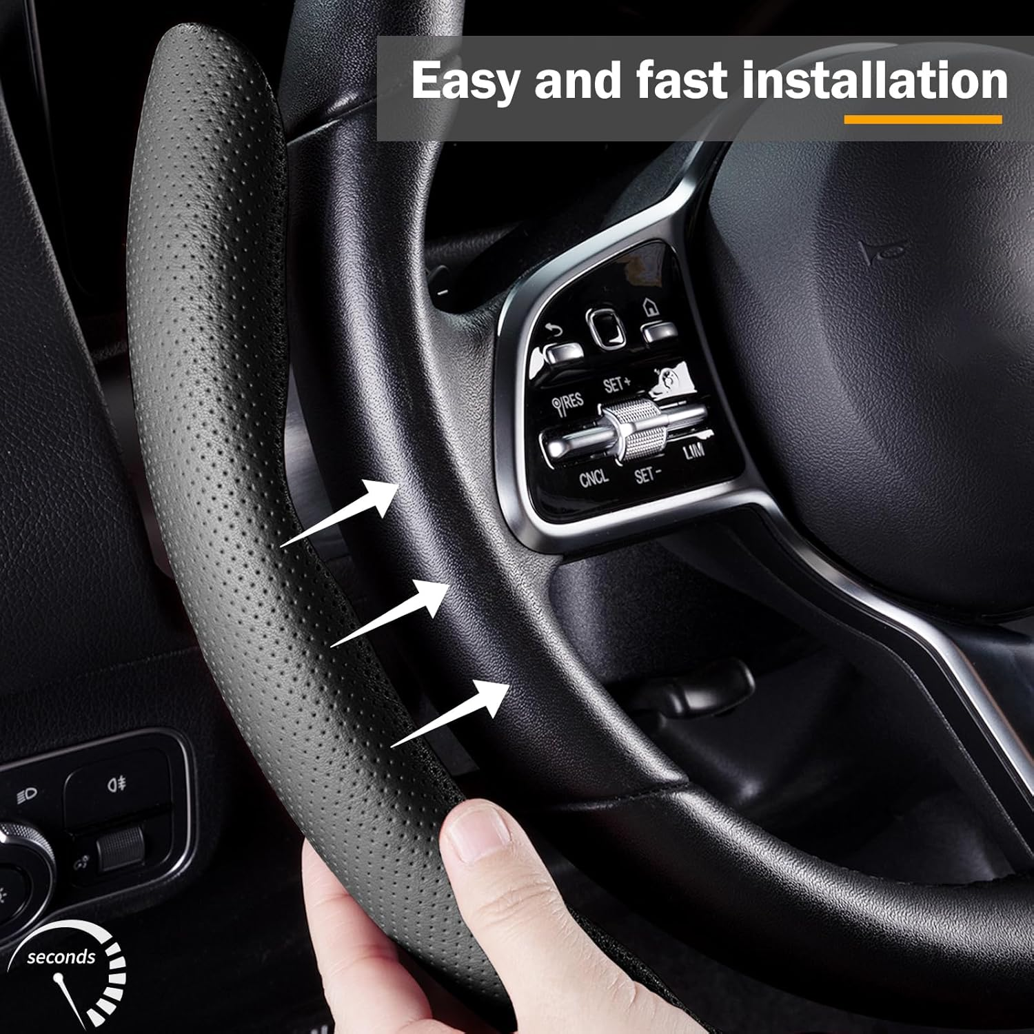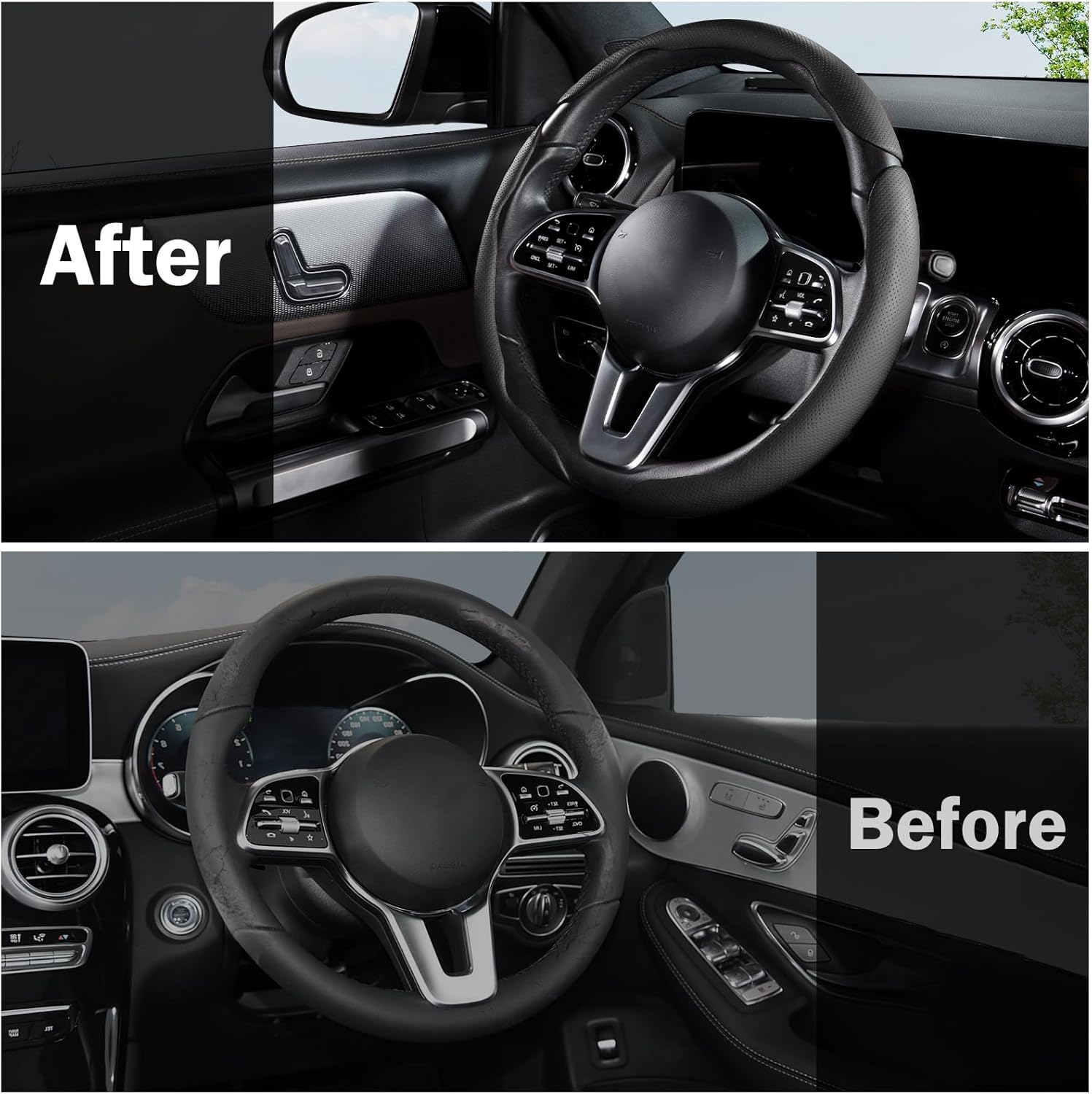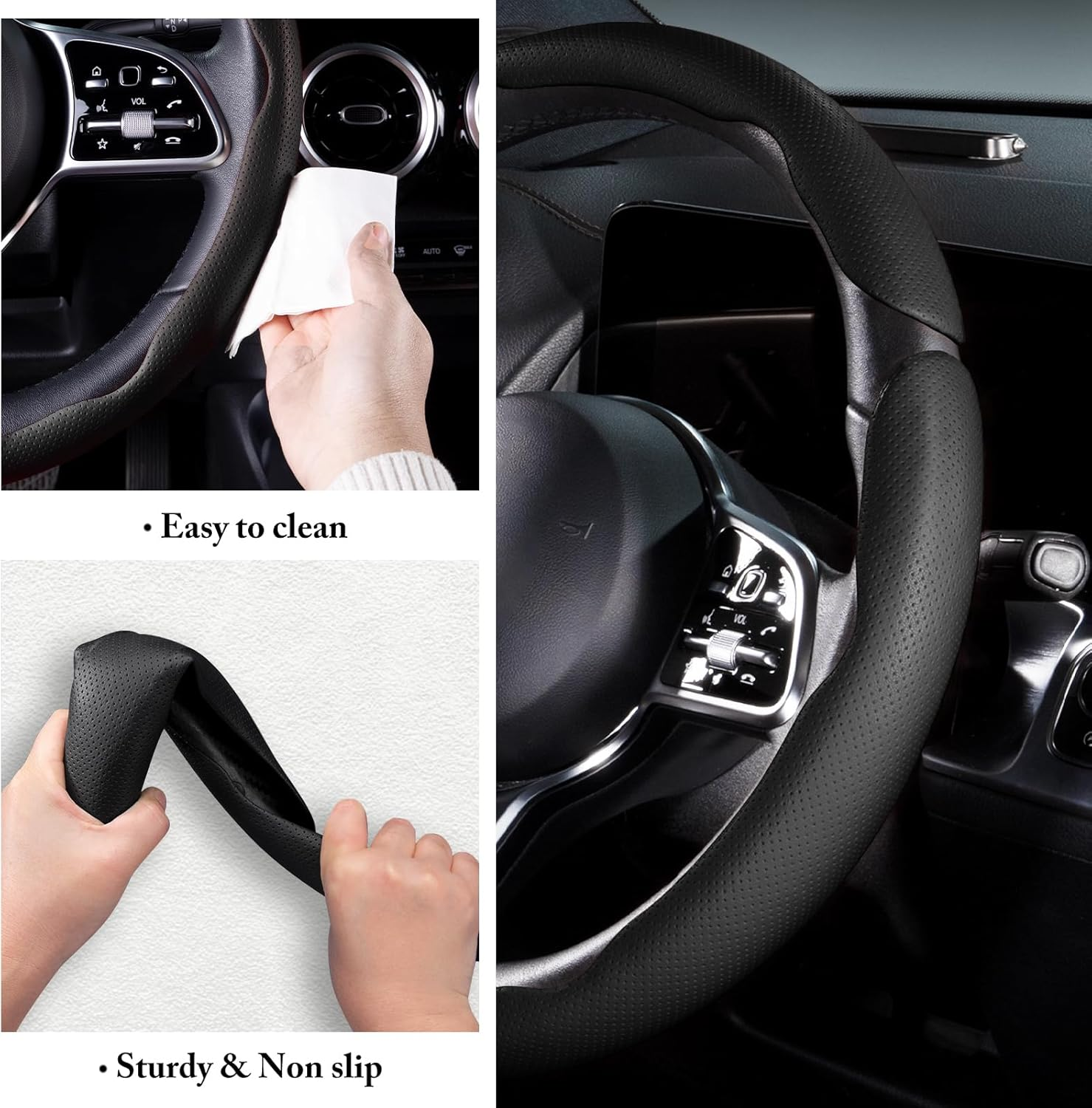 Skin-friendly Leather: Selected Premium leather with superb perforation craftsmanship, skin-friendly, sweat-absorbent and breathable, leather steering wheel cover perfect match with your car interiors. NOTE: After installing this steering wheel cover, the steering wheel's heating function will STILL WORK, just with slightly slower heat transfer.