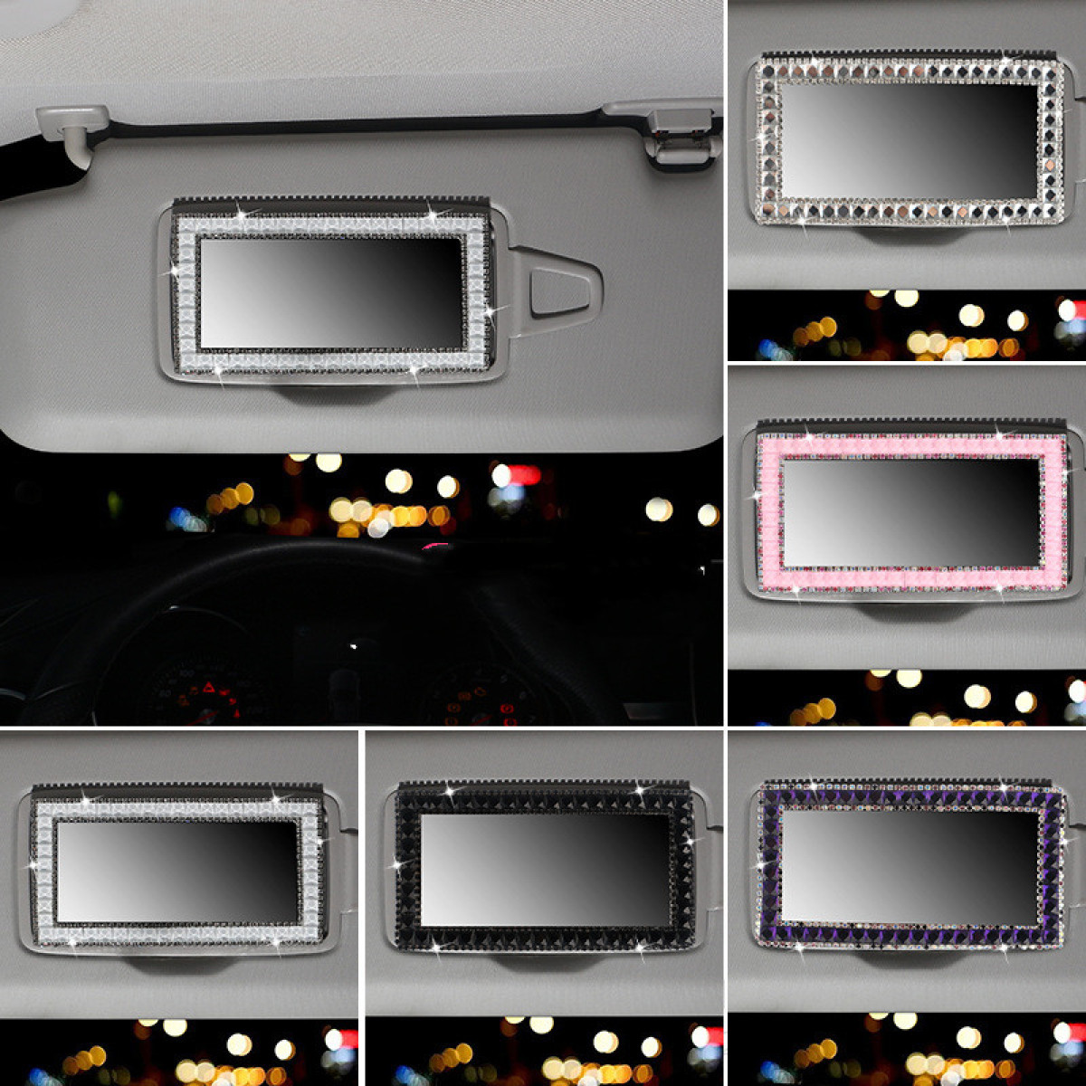 Color: Car vanity mirror - silver diamond, car vanity mirror - jelly white, car vanity mirror - black diamond, car vanity mirror - pink diamond, car vanity mirror - purple diamond