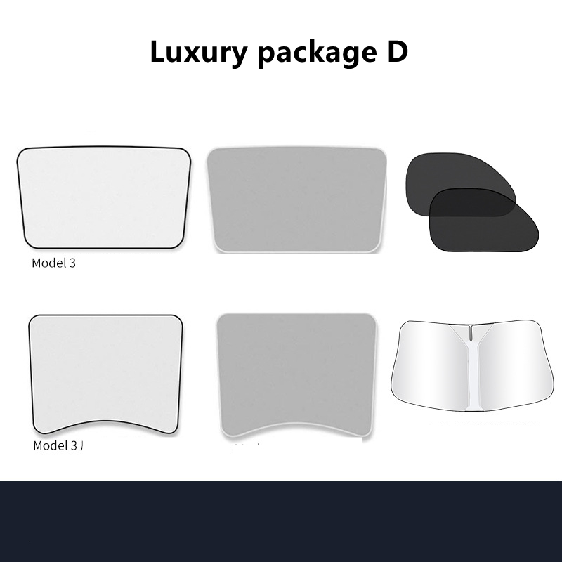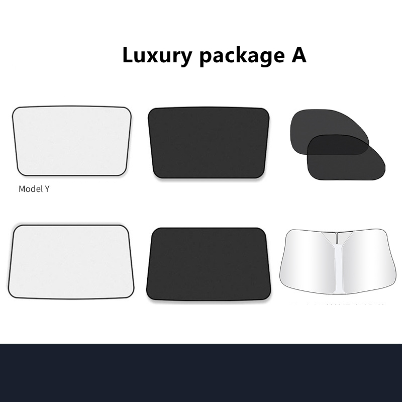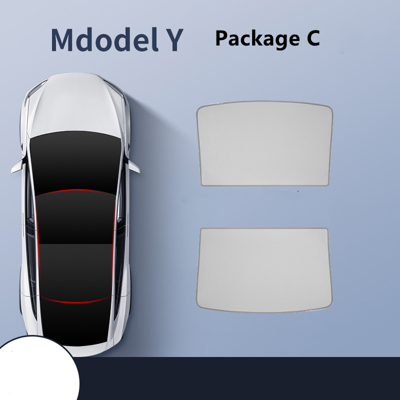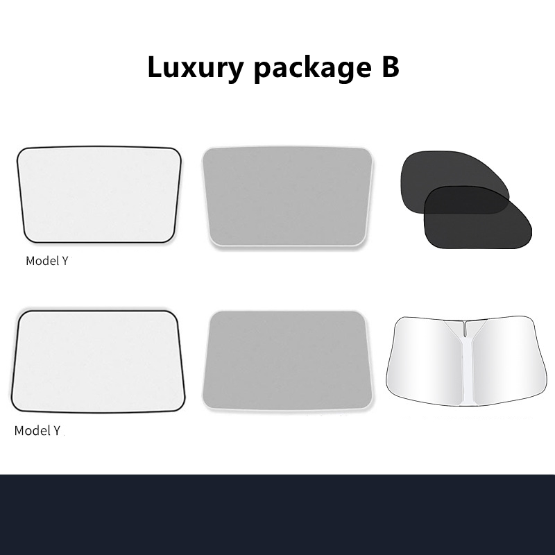 Package B: model Y black front and rear sunroofs with silver-painted blackout curtains,