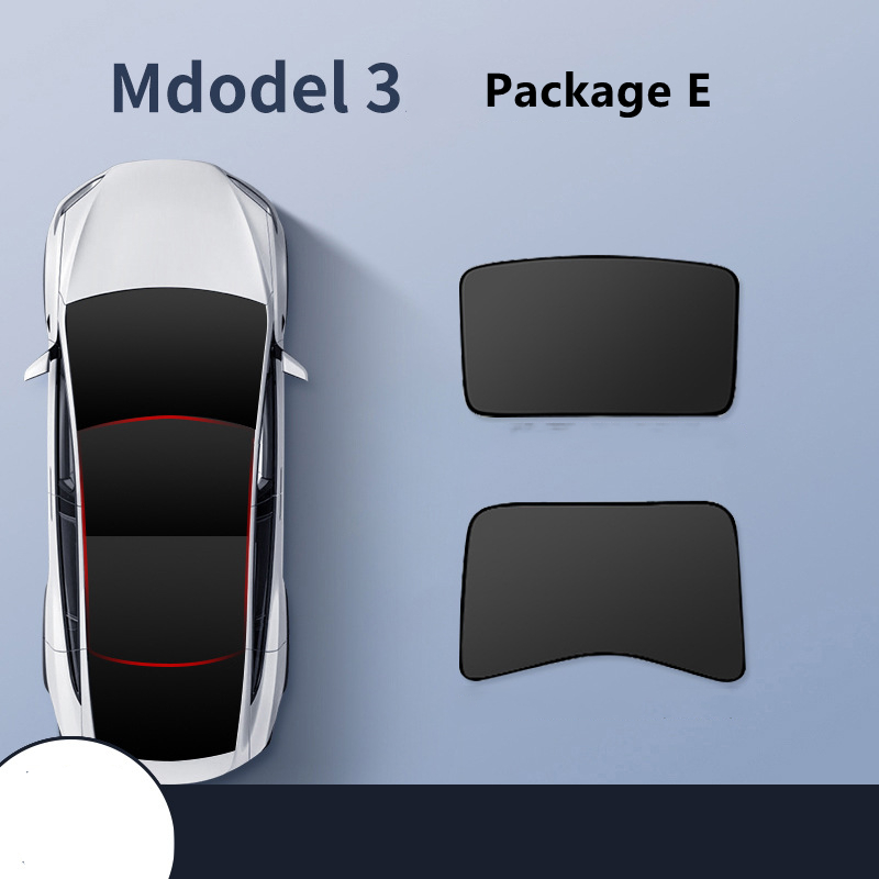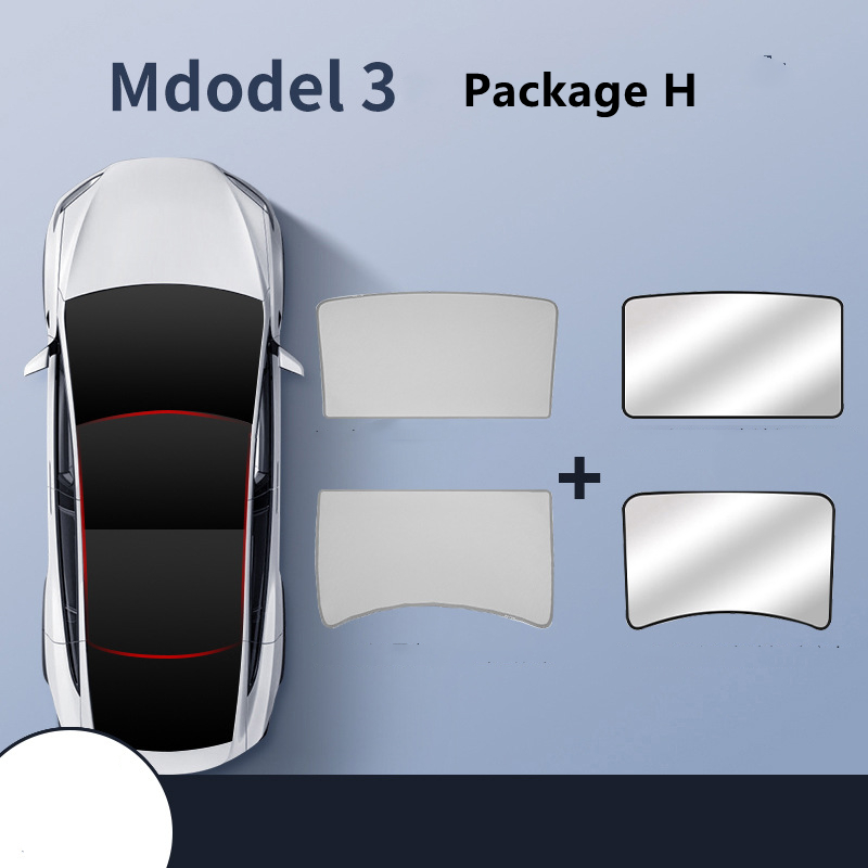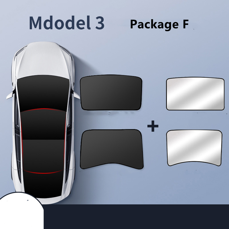 Package F: model 3 black front and rear sunroofs with silver-painted blackout curtains,