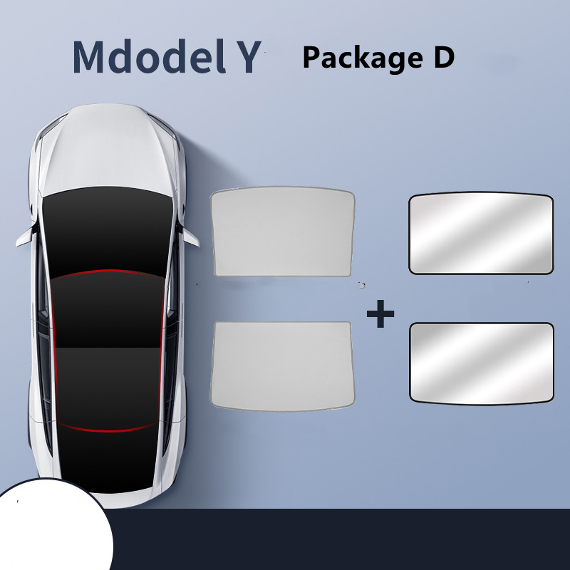 Package D: model Y original car color front and rear sunroof plus silver blackout curtain,