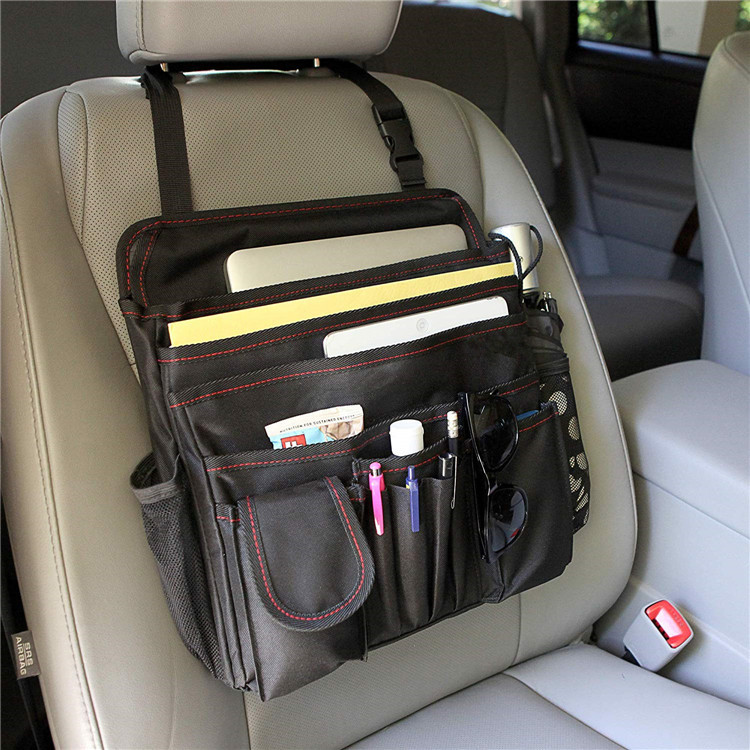 Name: Short car storage bagDimensions: 13 x 3 X 13.8 inchesMaterial: 600D Oxford clothColor: black + gray edging, customizable