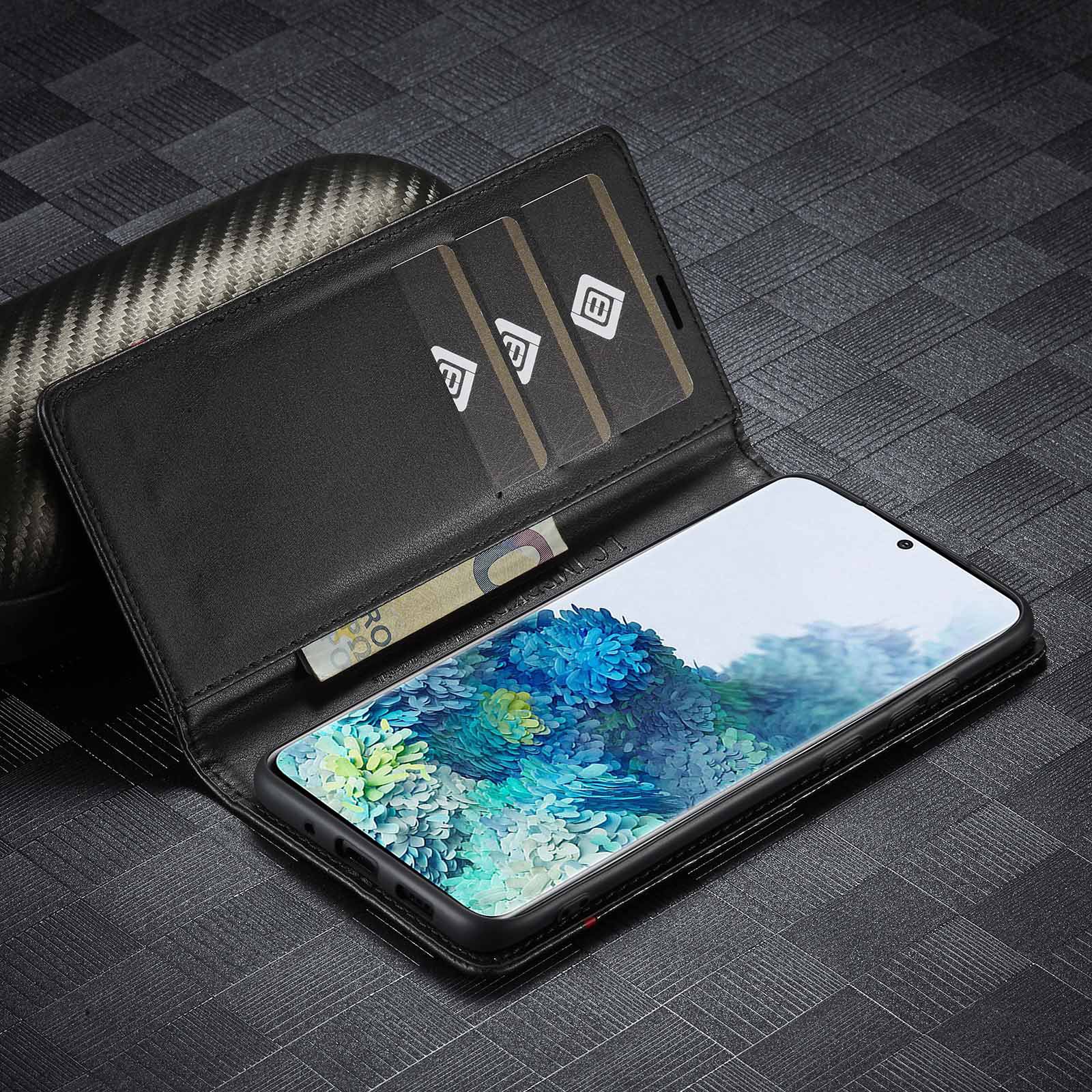 Product number: Carbon fiber pattern wallet style pair suction leather case