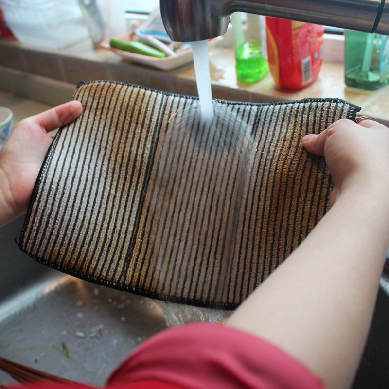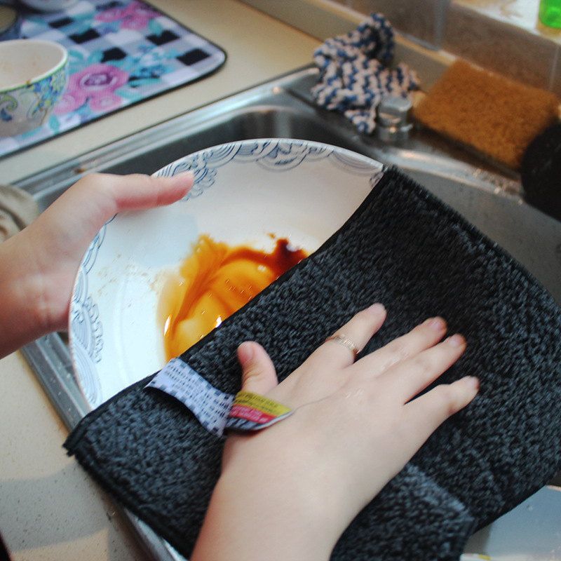 Product category: Dish towelMaterial: PolyesterColor: dark grey + stripesSpecification: 18*23cm