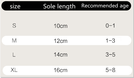 Children's socks size: S size 0-1 years old, M size 1-3 years old, L size 3-5 years old, XL size 5-8 years old