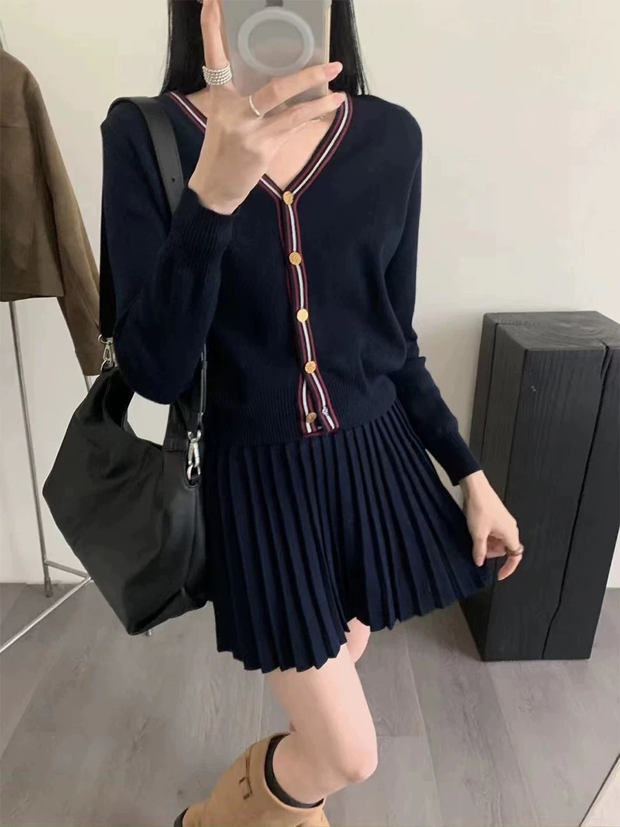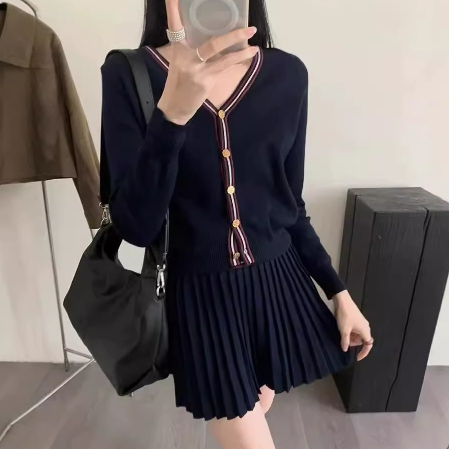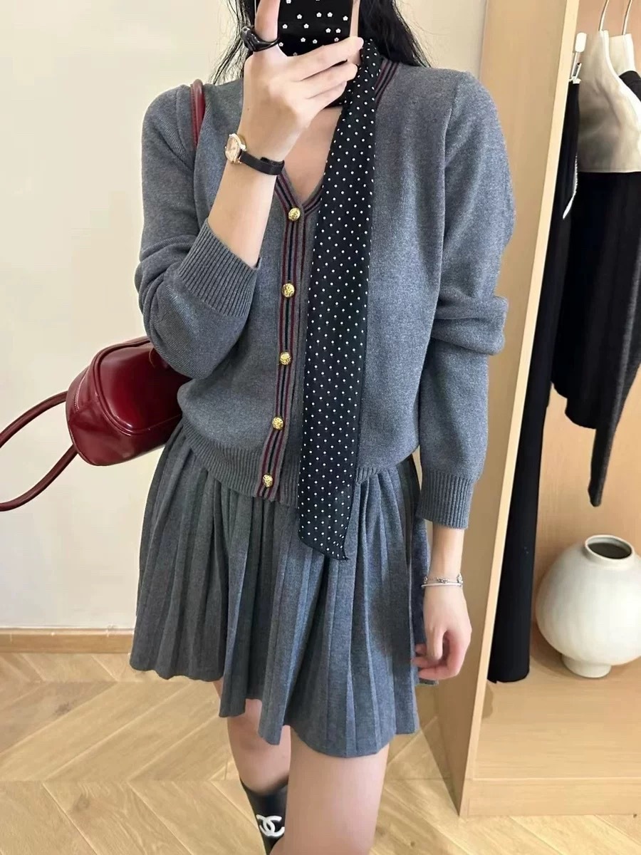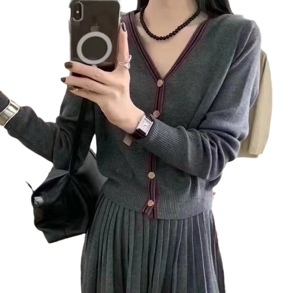 Cardigan Half-length Pleated Skirt Two-piece Set