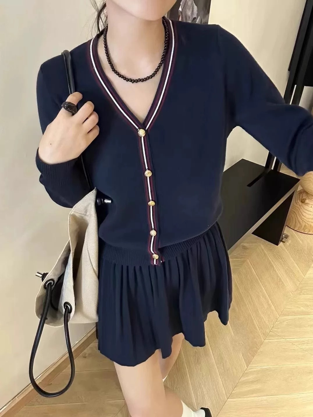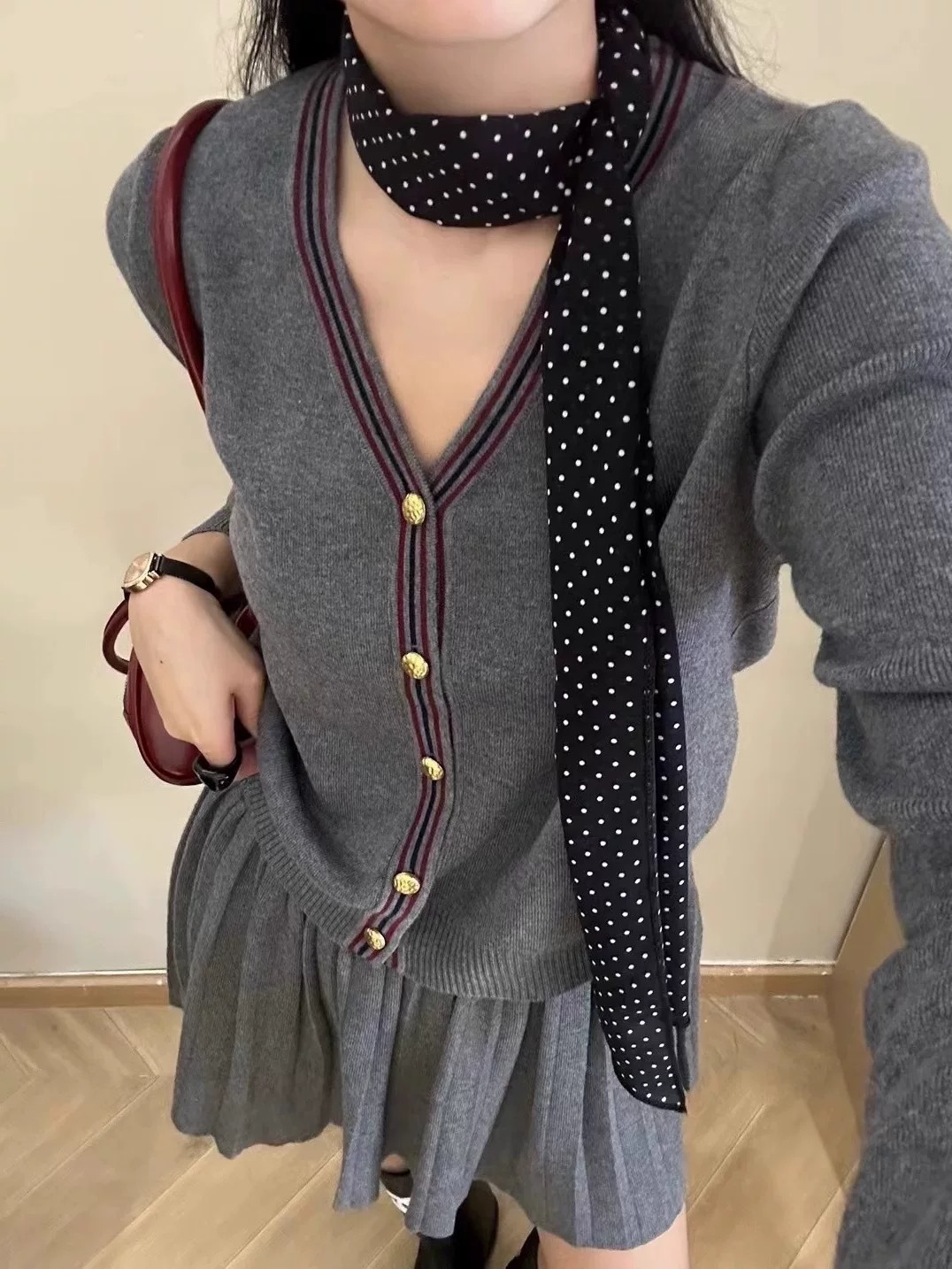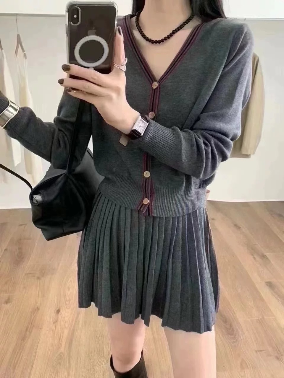 Cardigan Half-length Pleated Skirt Two-piece Set