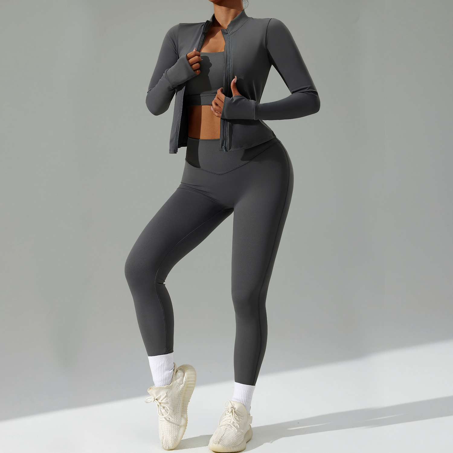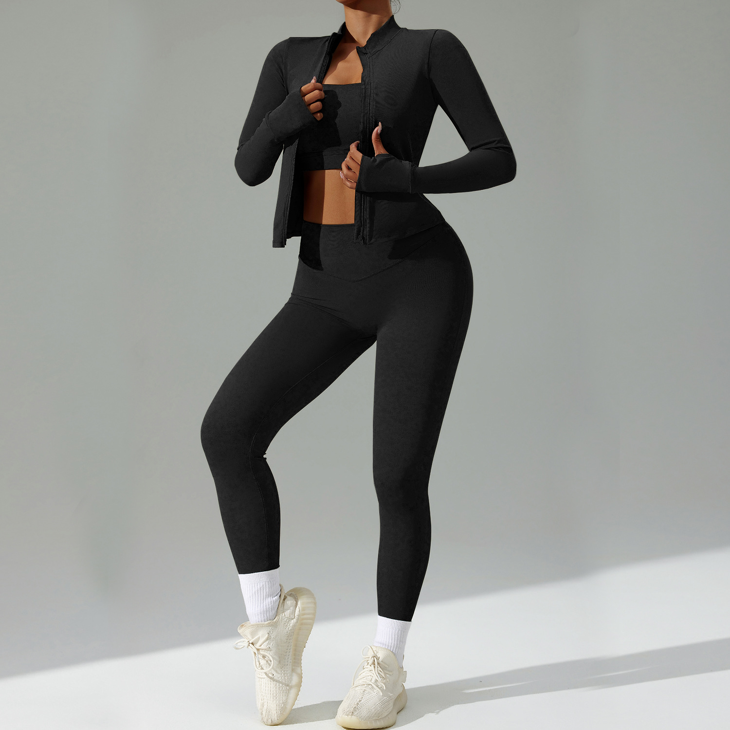 Cardigan Running Sports Quick-drying Workout Clothes Three-piece Suit