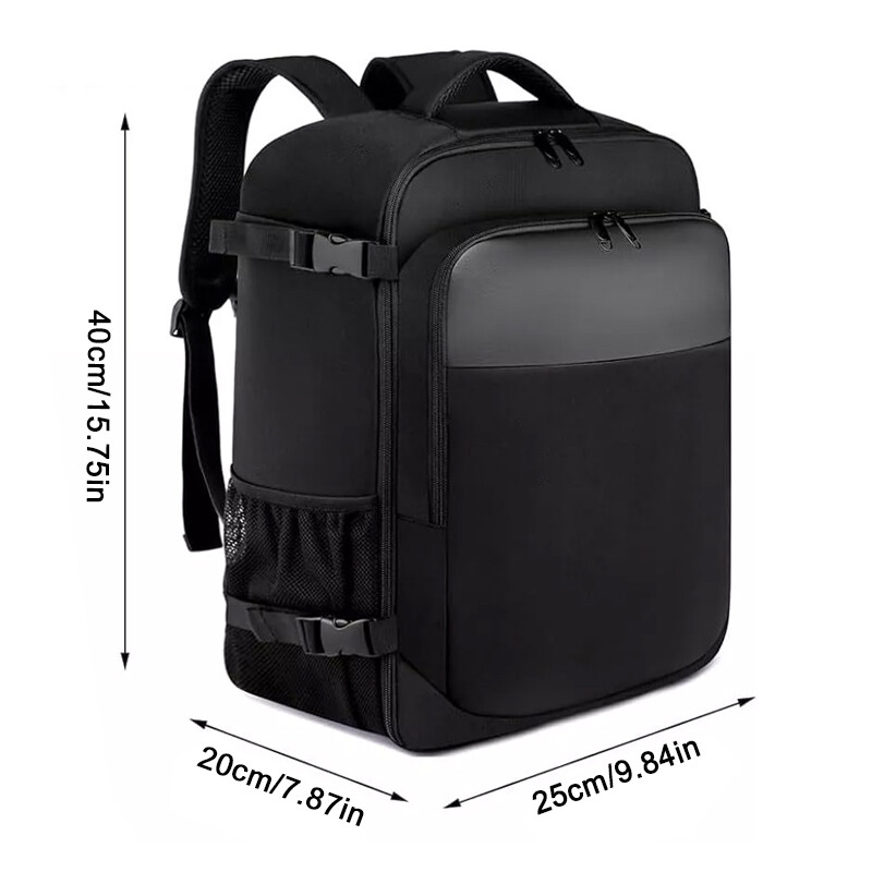 The size of the cabin backpack is 40x20x25cm, Weight: 0.65kg, Capacity: 20L. Perfect size comply with Ryanair free carry on luggage allowance and you can maximise your packing capacity with this hand luggage backpack. No need to worry about paying extra fee for oversize. It is only suitable for airline bags and for carrying a small amount of luggage on short trips. (Tips: Do not excess load, Measured After Backpack Filled)