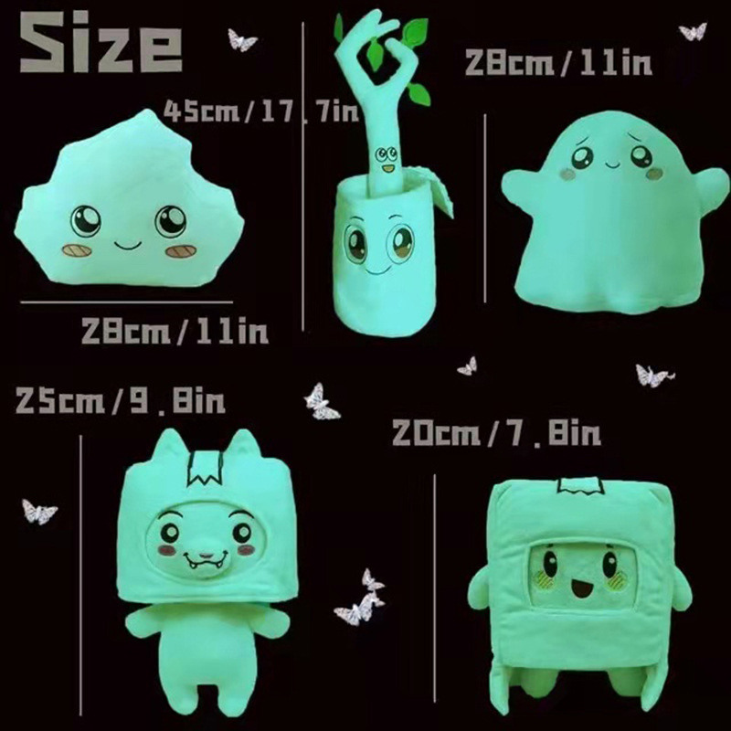 Size / weight: glow-in-the-dark box (20cm / 160g), glow-in-the-dark fox (25cm / 160g) glow-in-the-dark ghost (28cm / 260g)