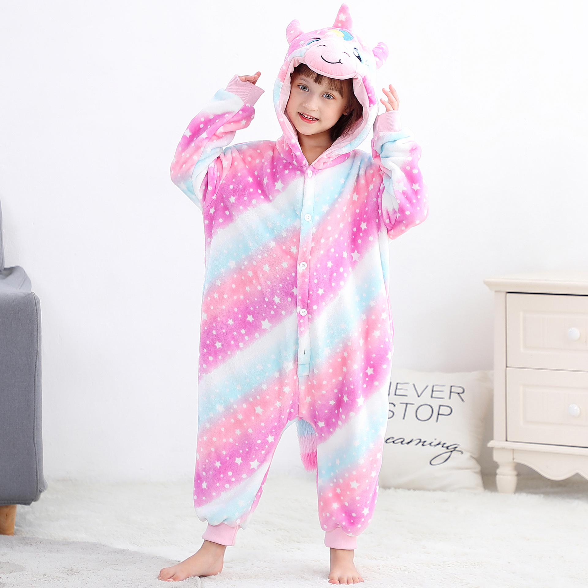 Colors: Medium-size children's yellow duck onesie, medium-size children's unicorn dragon onesie, medium-size children's pink bunny onesie, medium-size children's tiger onesie, medium-size children's zebra onesie, medium-size children's dinosaur onesie, medium-size children's starry sky unicorn onesie, medium-size children's panda onesie, medium-size children's cow onesie, medium-size children's capybara onesie, medium-size children's cute leopard print onesie, medium-size children's lion onesie, medium-size children's penguin onesie, medium-size children's rainbow unicorn onesie