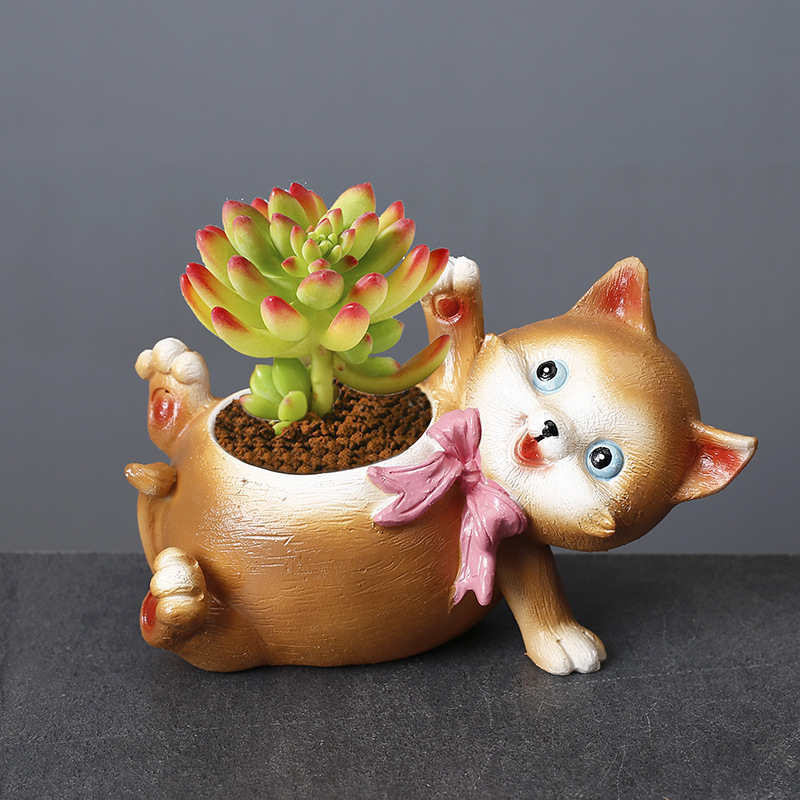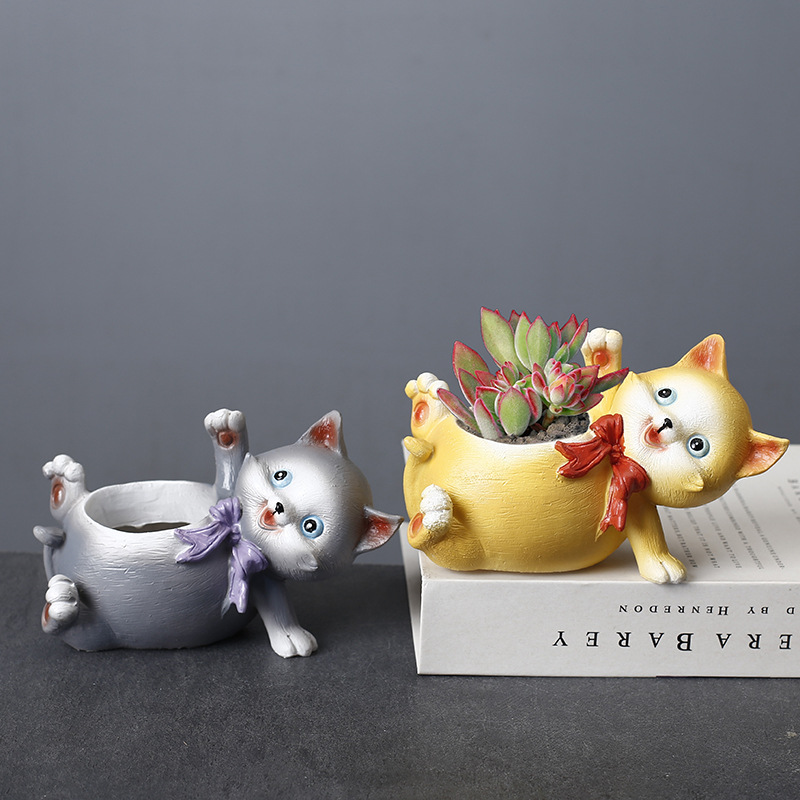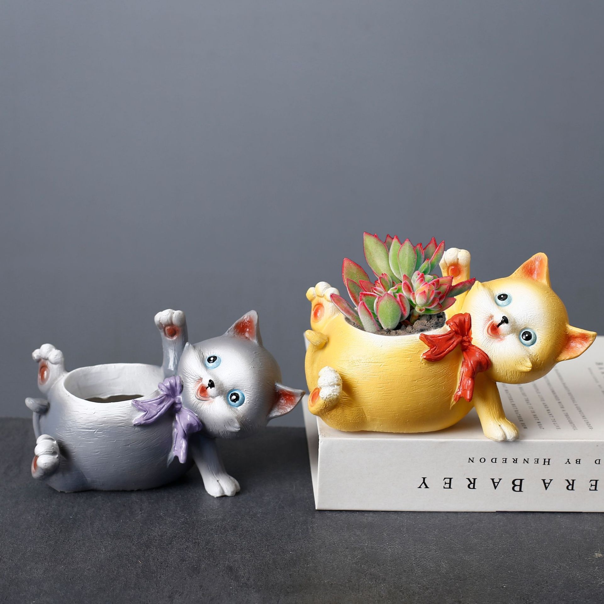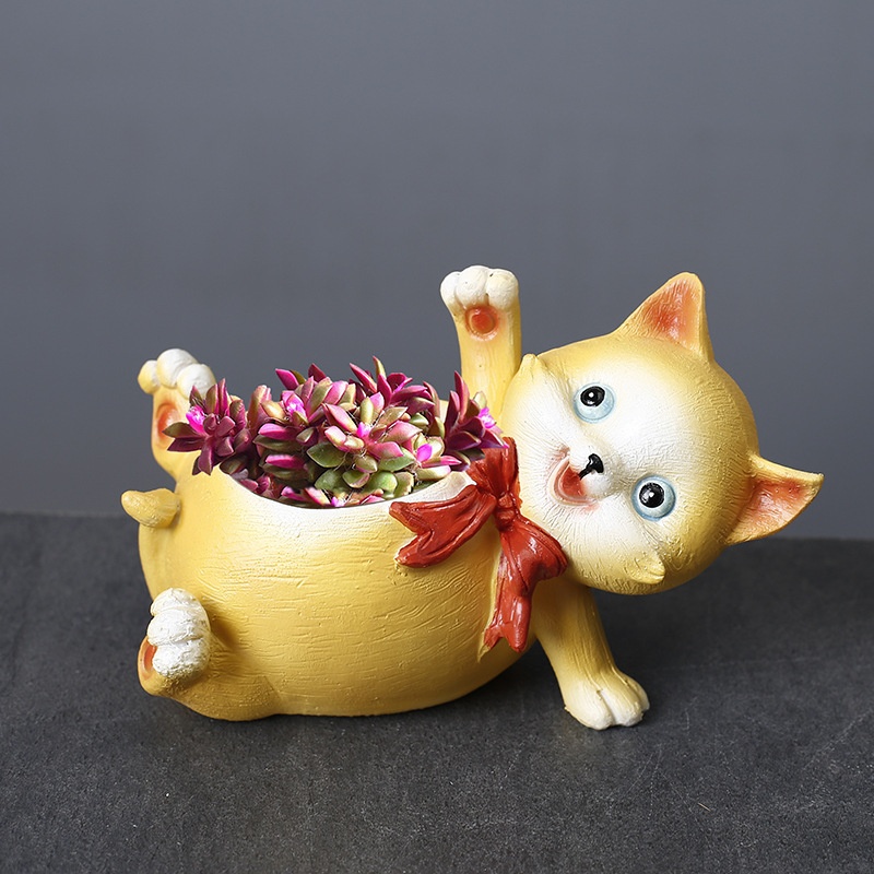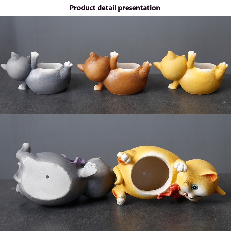Color: resin Gray playing cat flowerpot, resin Brown playing cat flowerpot, Resin yellow playing cat flowerpot