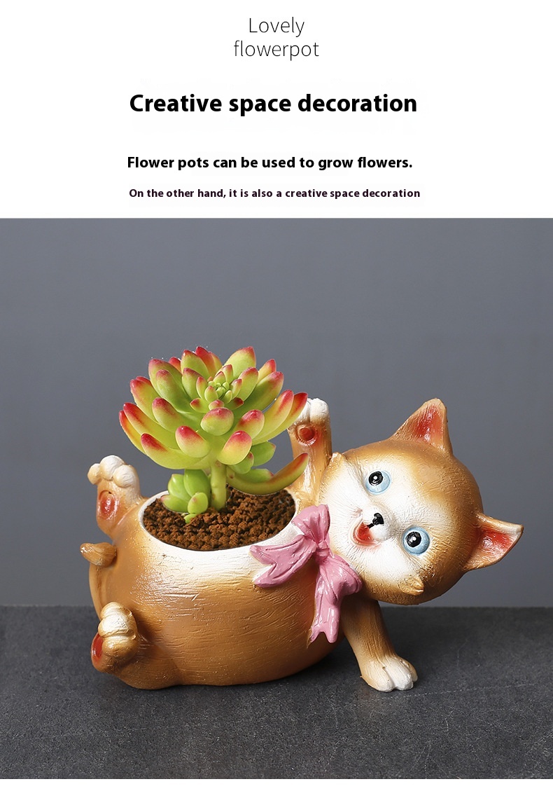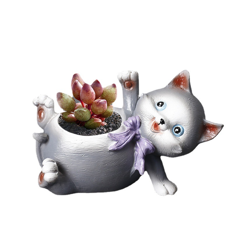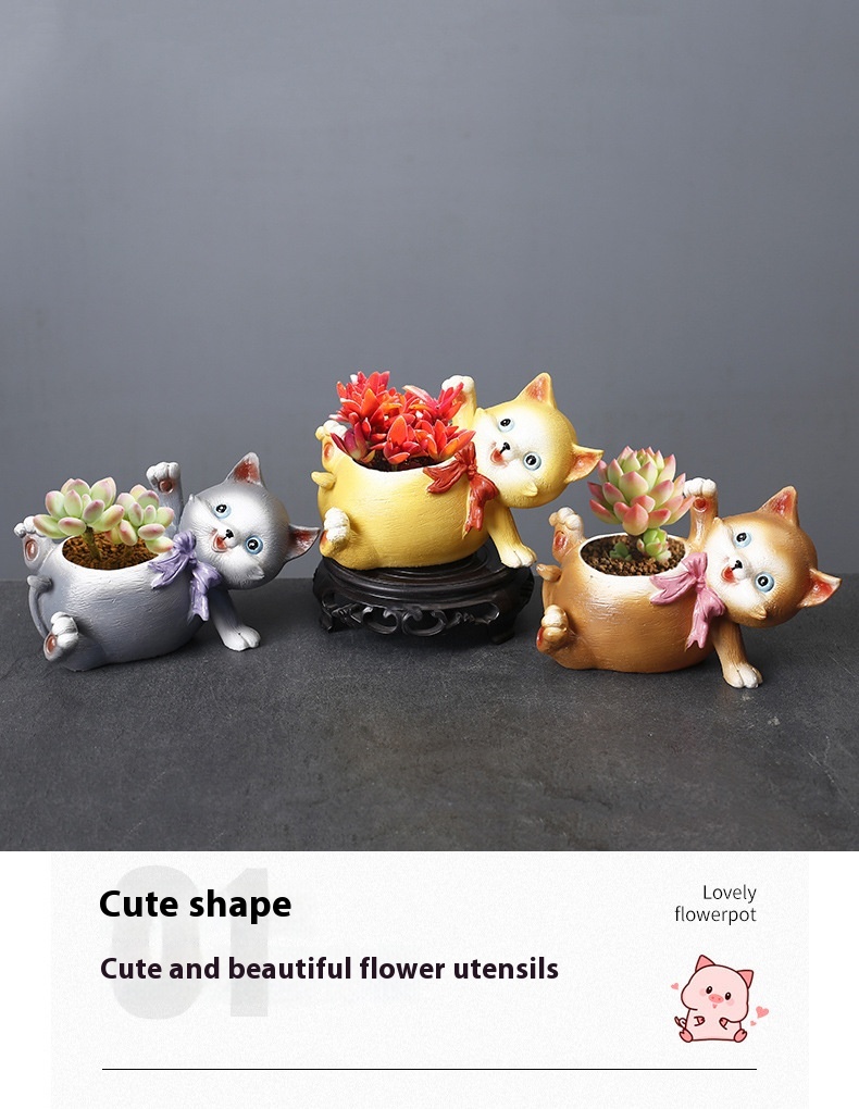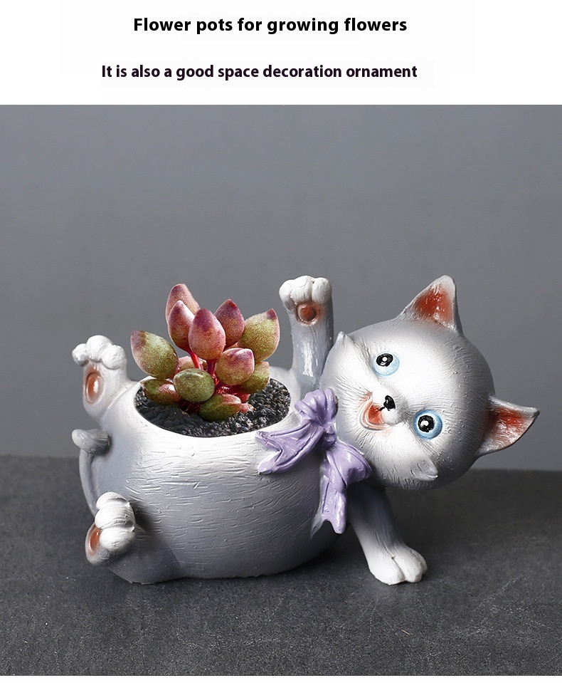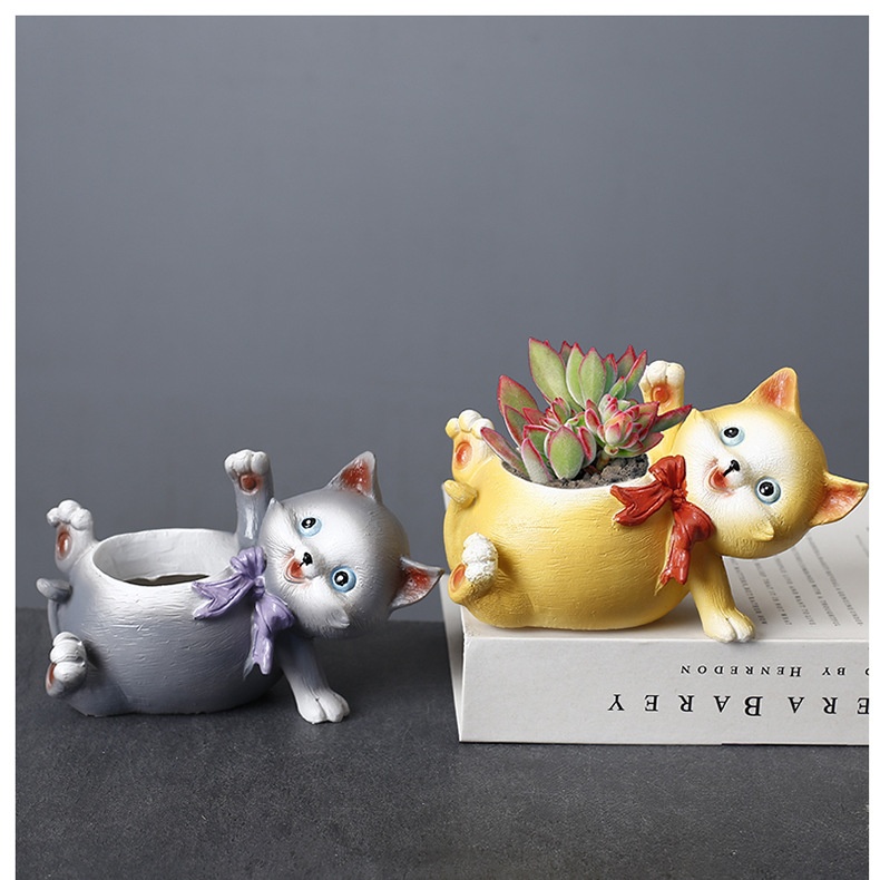 Color: resin Gray playing cat flowerpot, resin Brown playing cat flowerpot, Resin yellow playing cat flowerpot