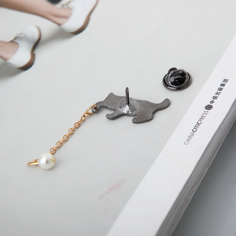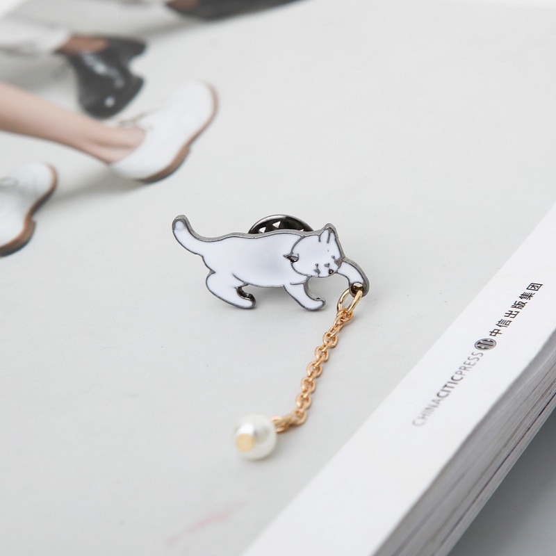 This cute brooch features a white cat chasing a ball. It is the perfect gift for cat owners and cat lovers.