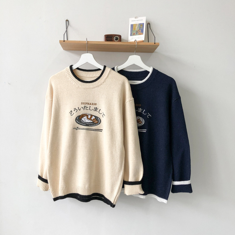 Cartoon Anime Retro Hit Color Round Neck Loose Men's And Women's Pullover Sweater