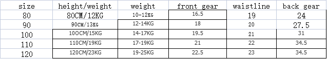 Suitable height: 80CM/12KG, 90CM/13KG, 100CM/15KG, 110CM/19KG, 120CM/23KG