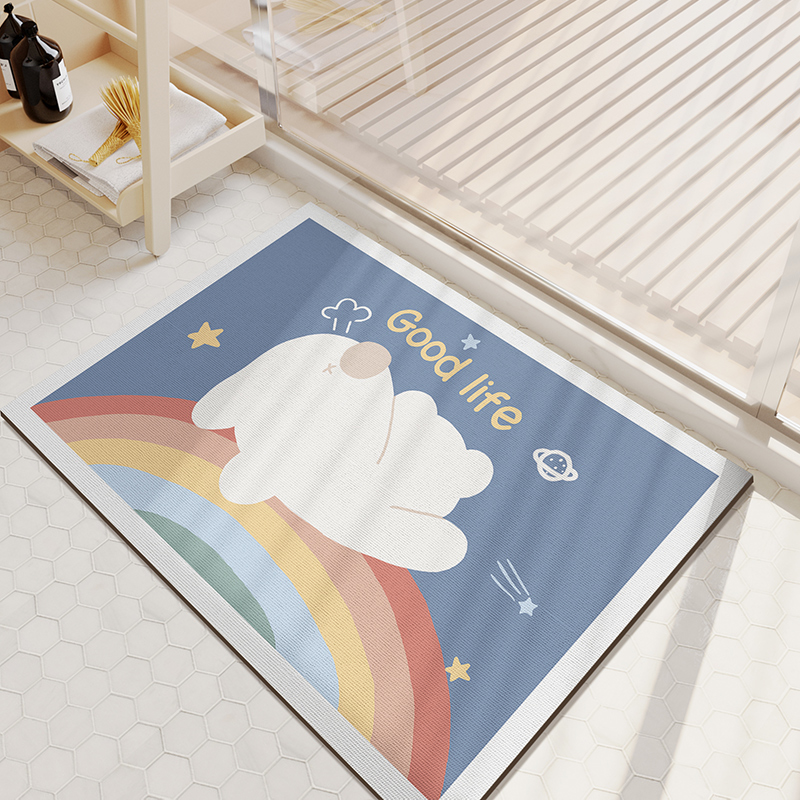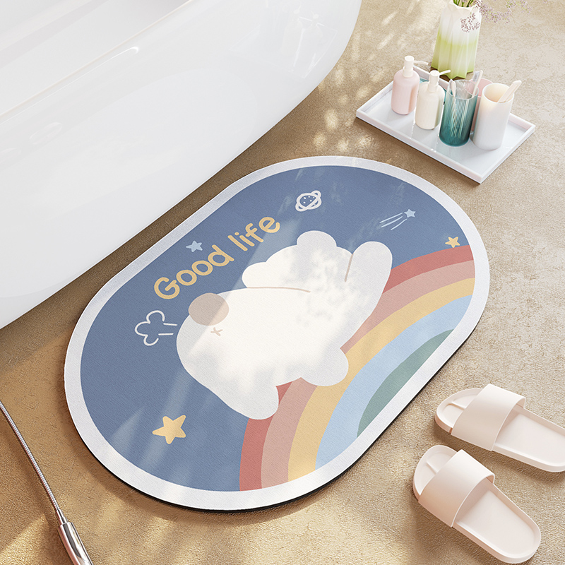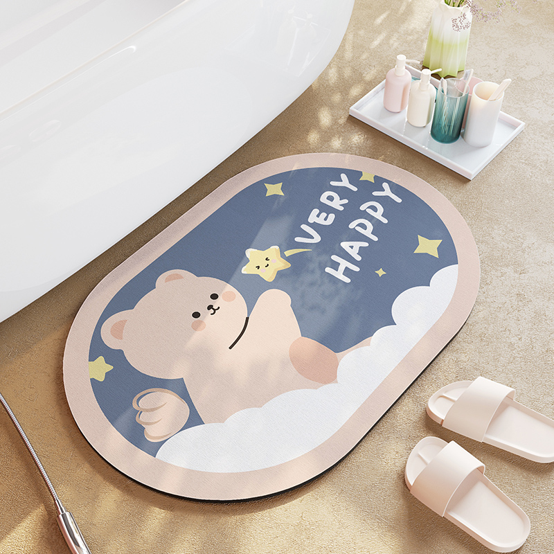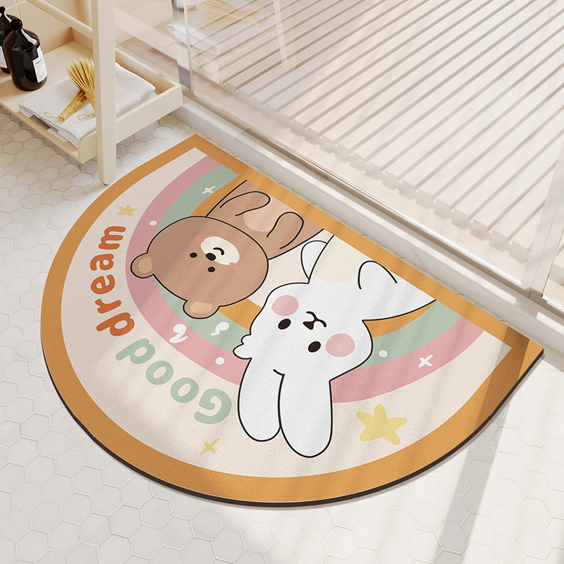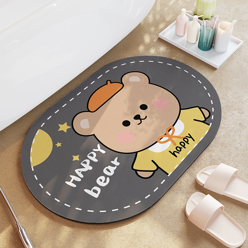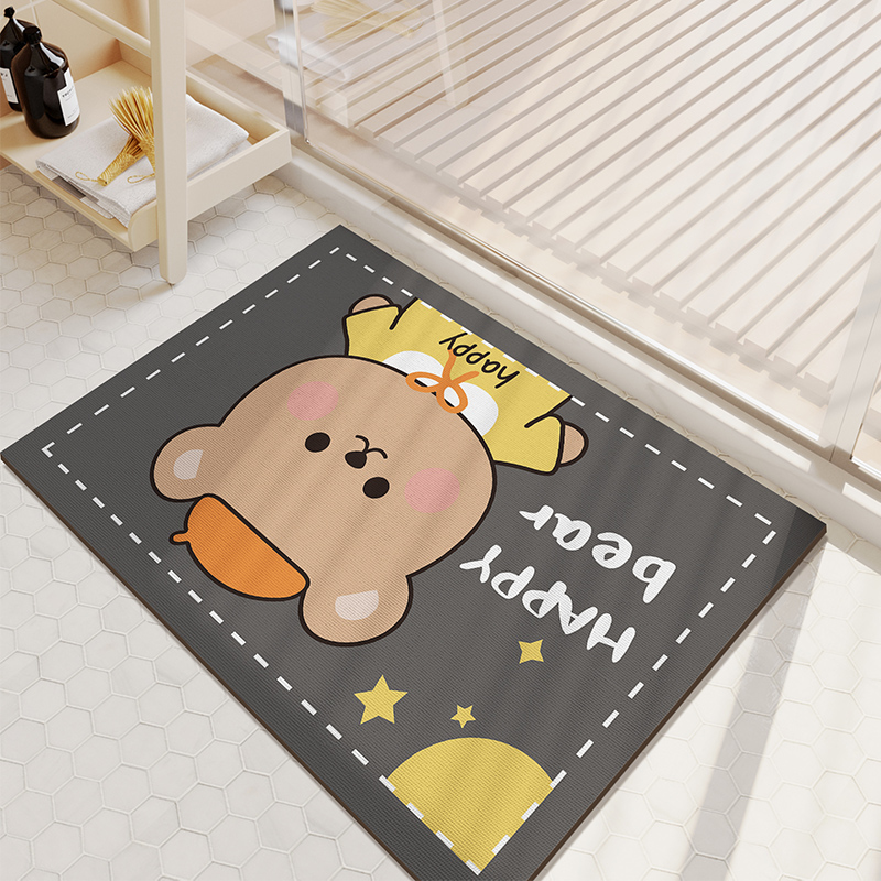 Cartoon Bathroom Diatom Mud Absorbent Cushion Toilet Door Mat Toilet Door Quick-drying Floor Mat
