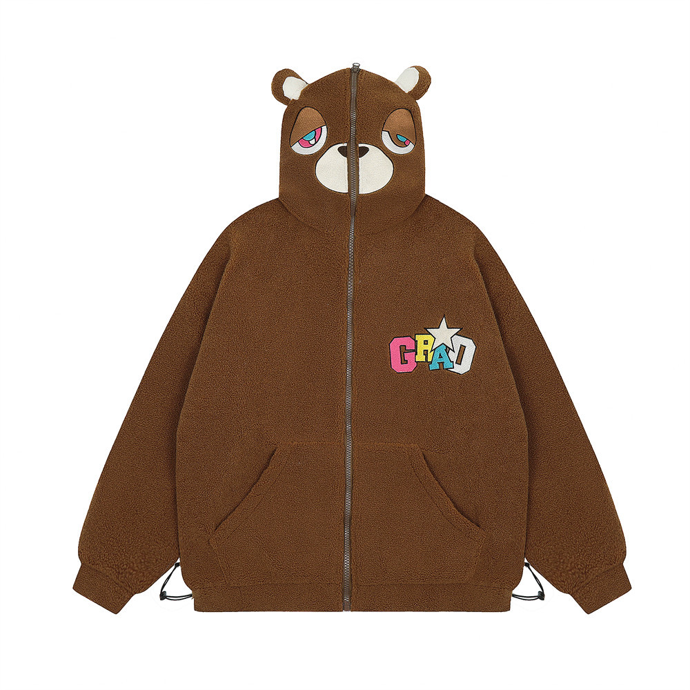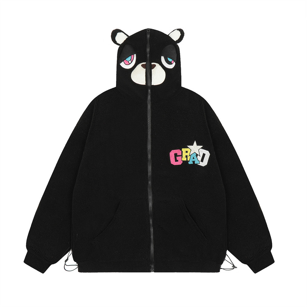 Cartoon Bear Ear Hooded Masked Sweater Coat