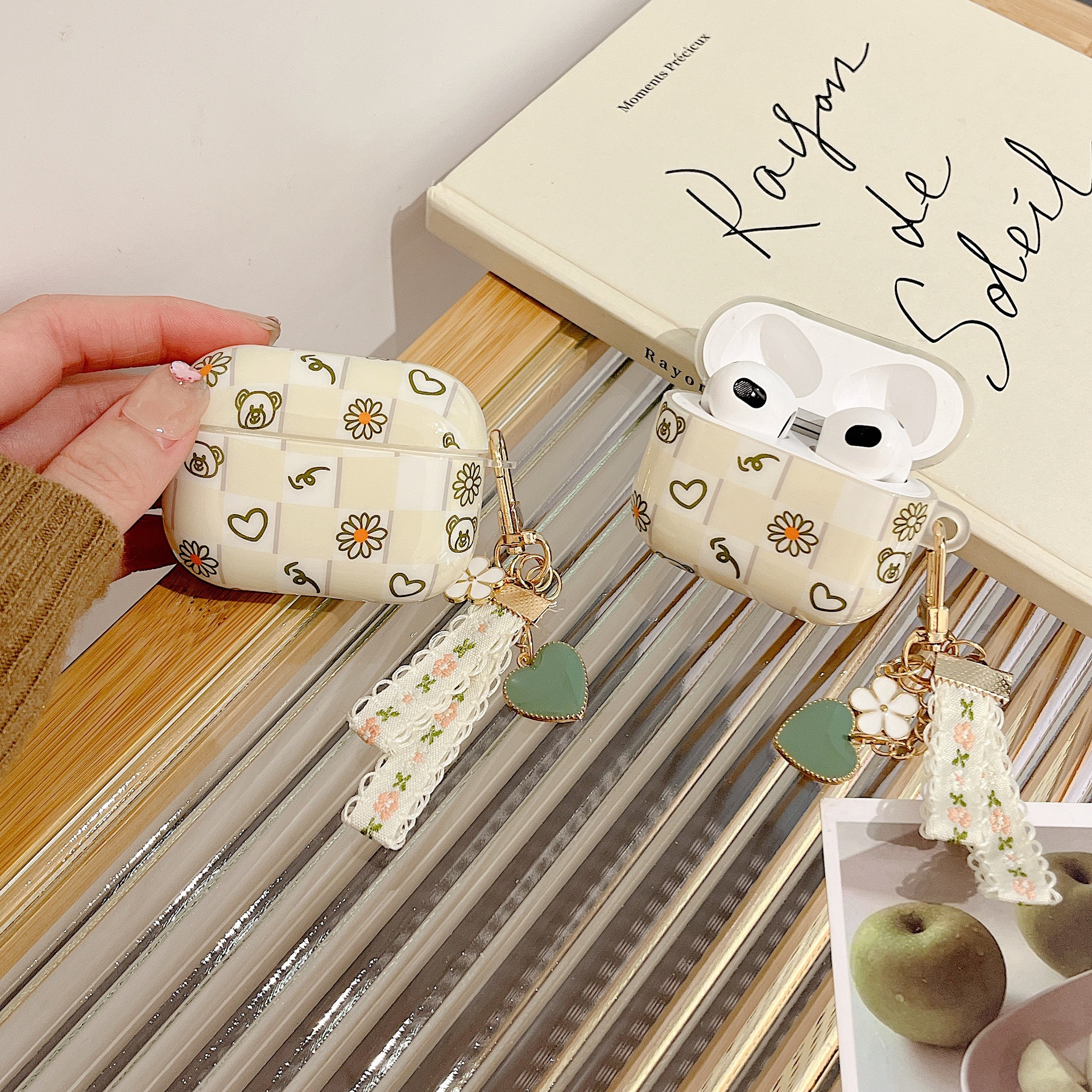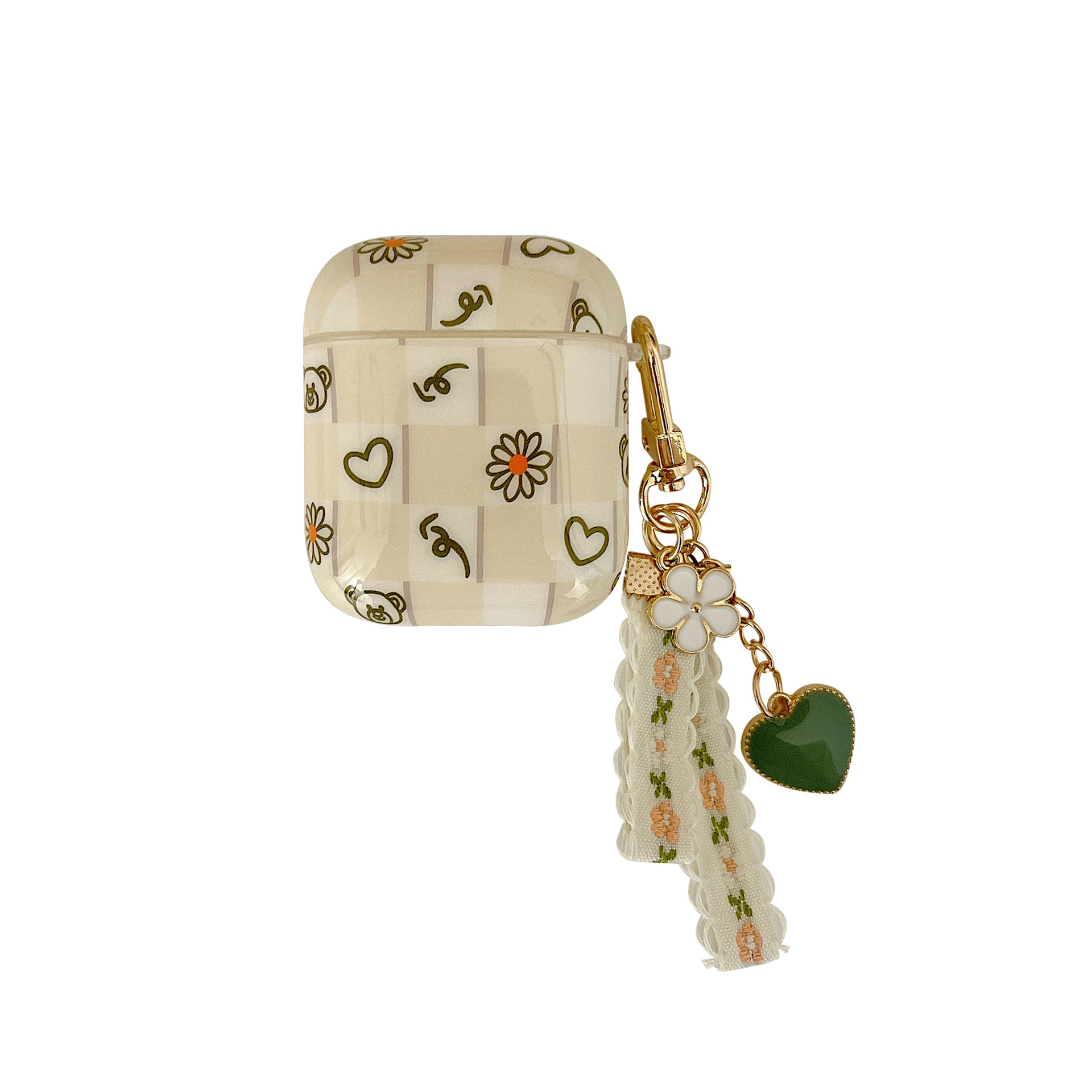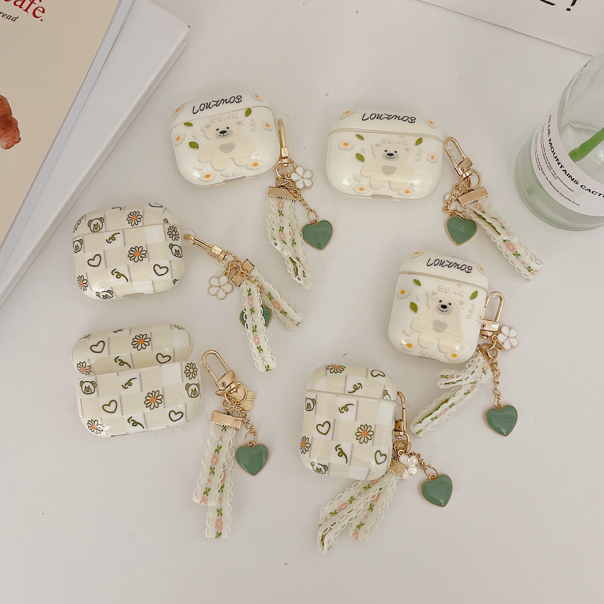 Color: flower checked bear+love pendant, flower love bear+love pendant
