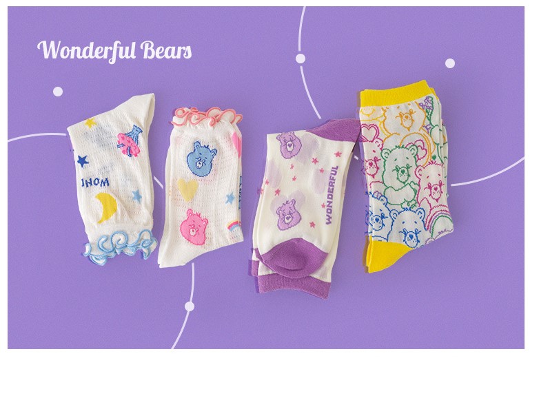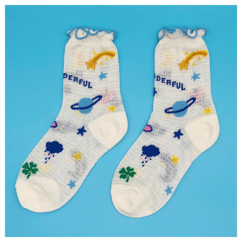High quality creative socks Harajuku rainbow kawaii bear painting animal print cute summer clown lace
