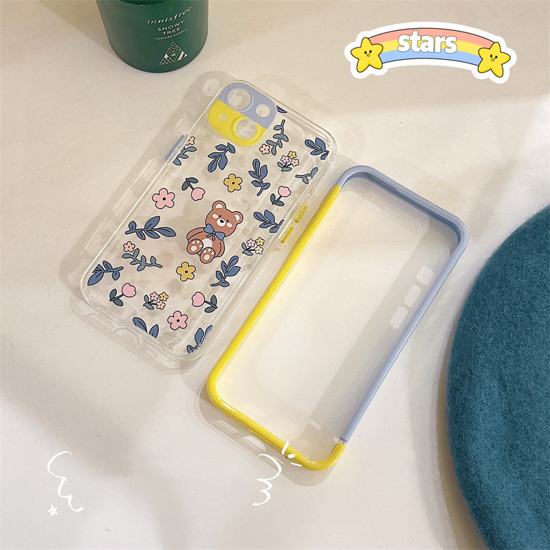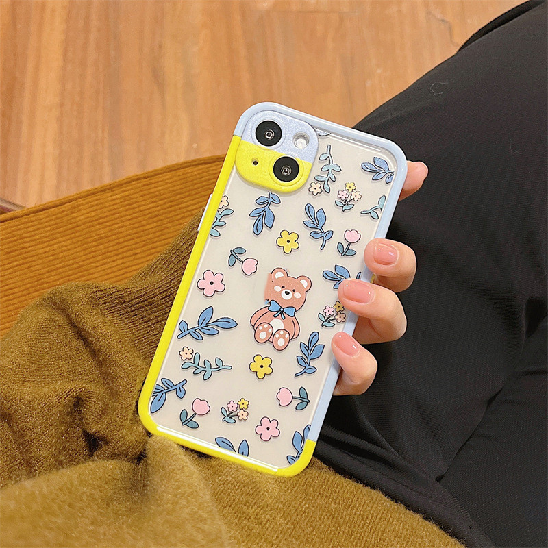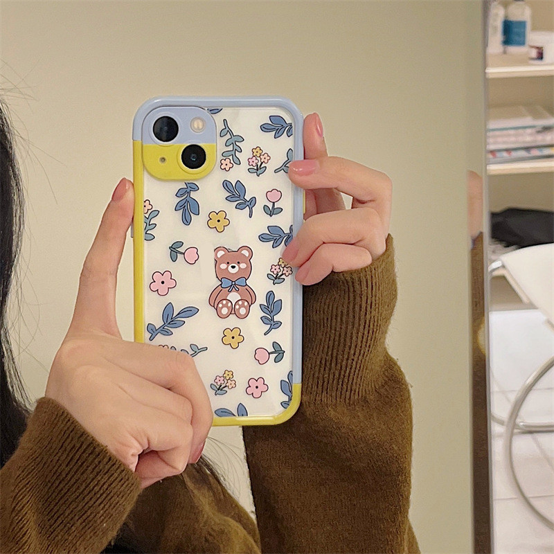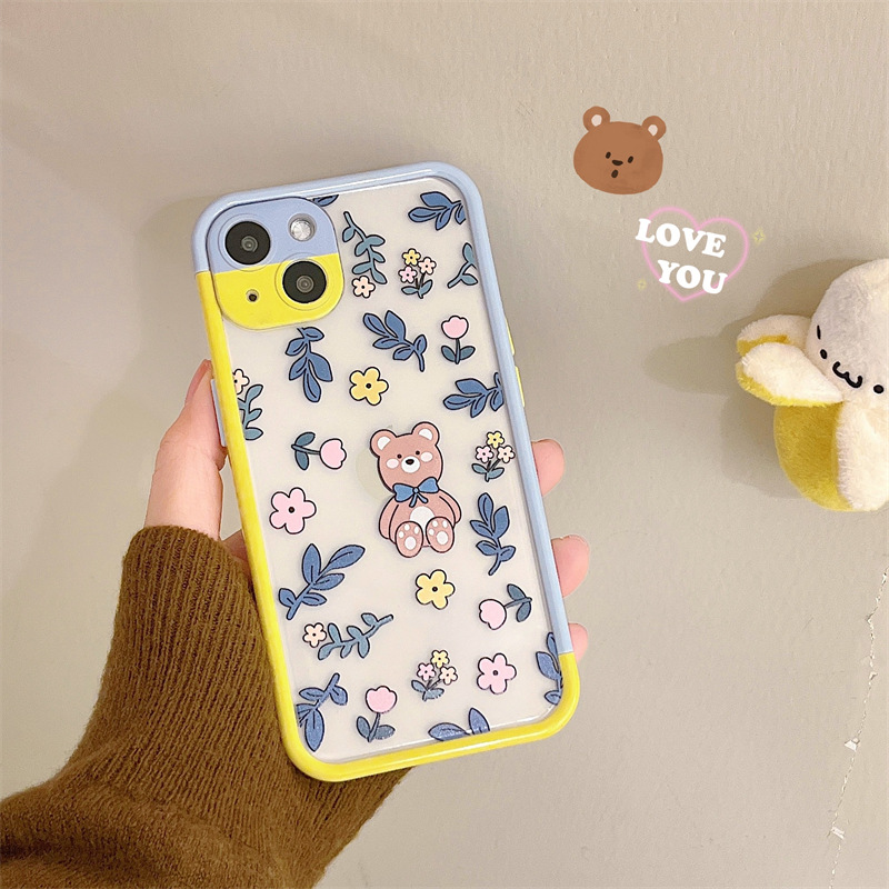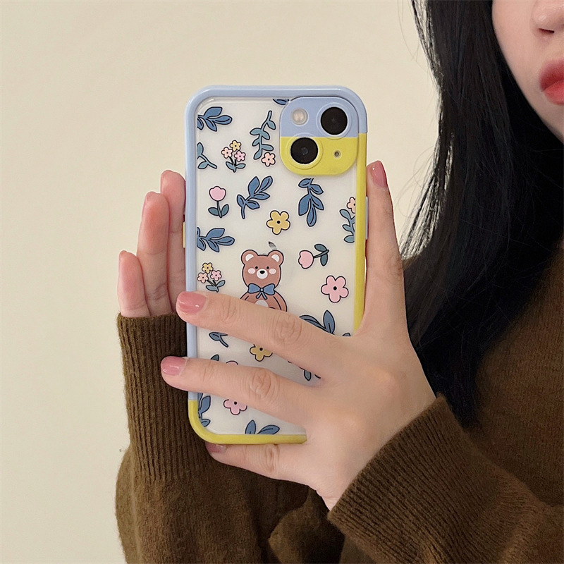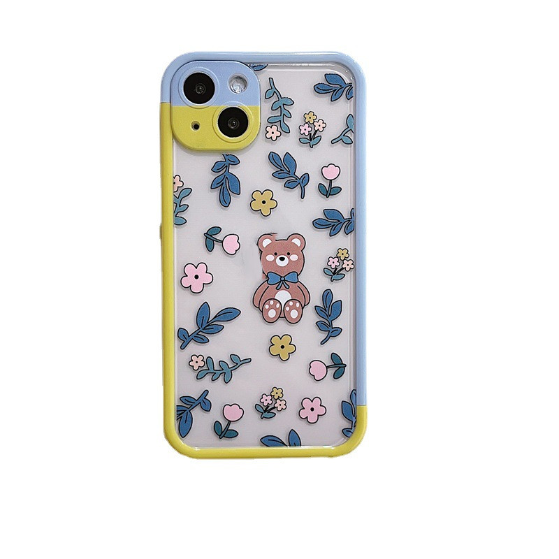 Color: Contrast color frame TPU blue leaf floral bear