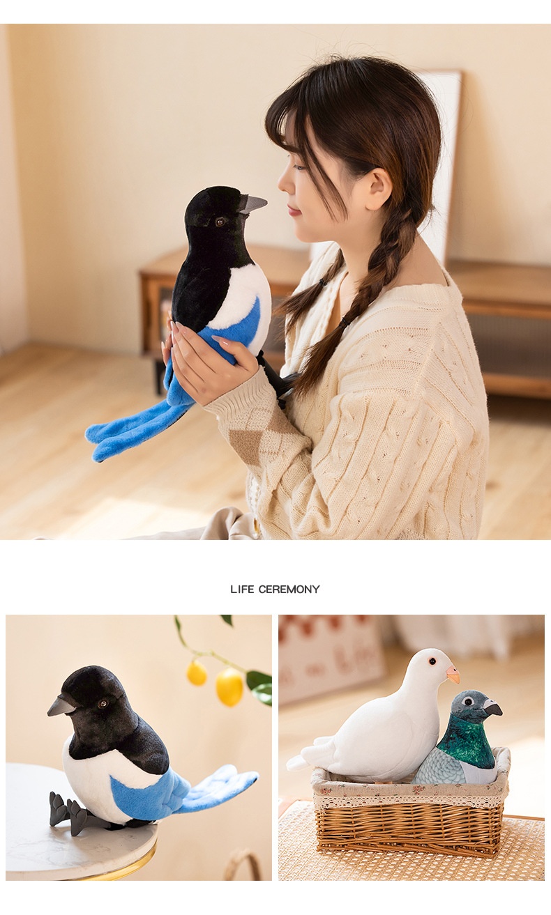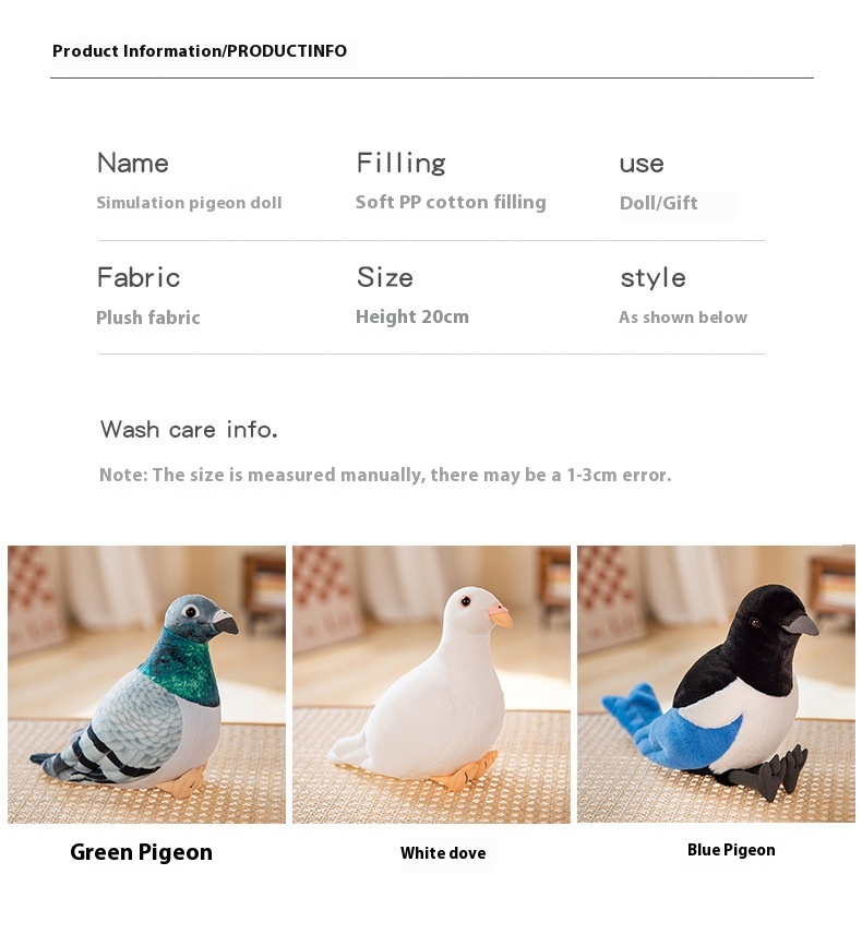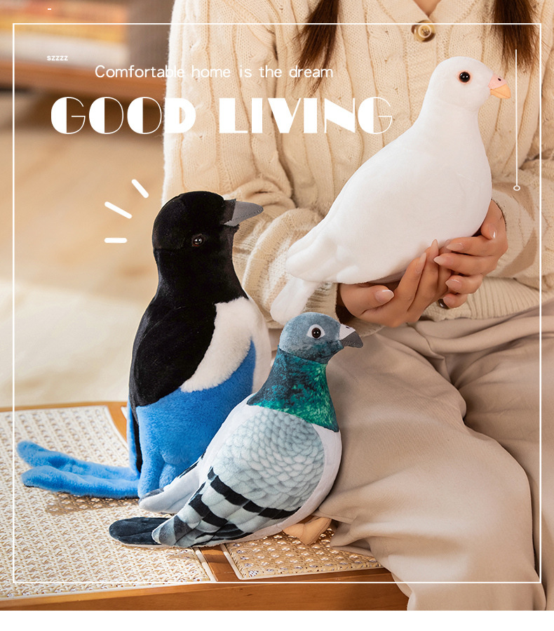 Color: green pigeon, White Pigeon, blue magpie